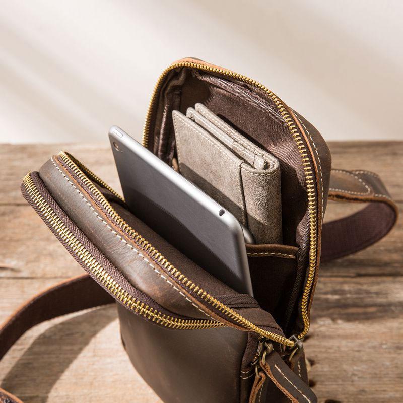 Design: Cool Leather Mens Sling Bag Sling Shoulder Bags Sling Backpack for men