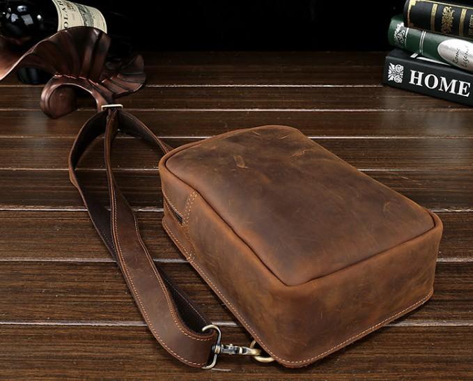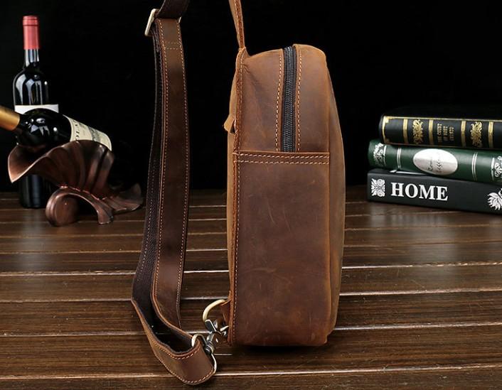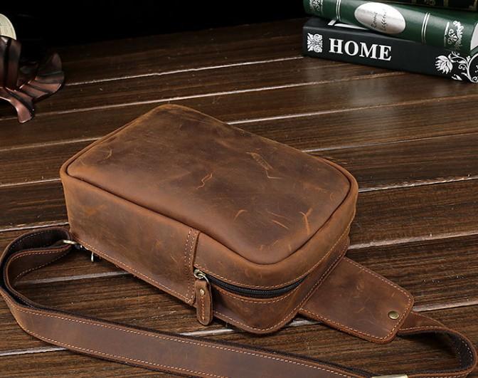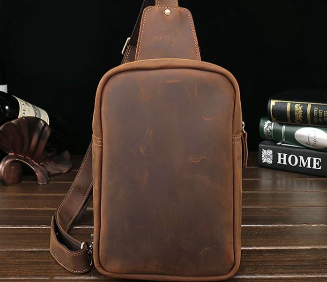 Design: Vintage Leather Mens Sling Shoulder Bag Sling Bag Chest Bag Sling Backpack for men