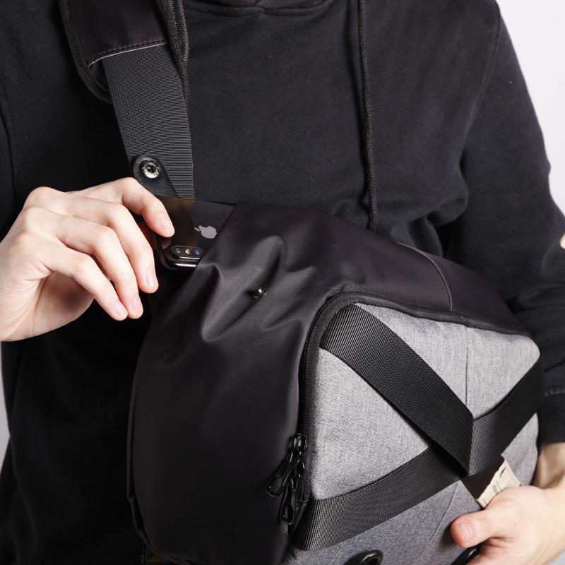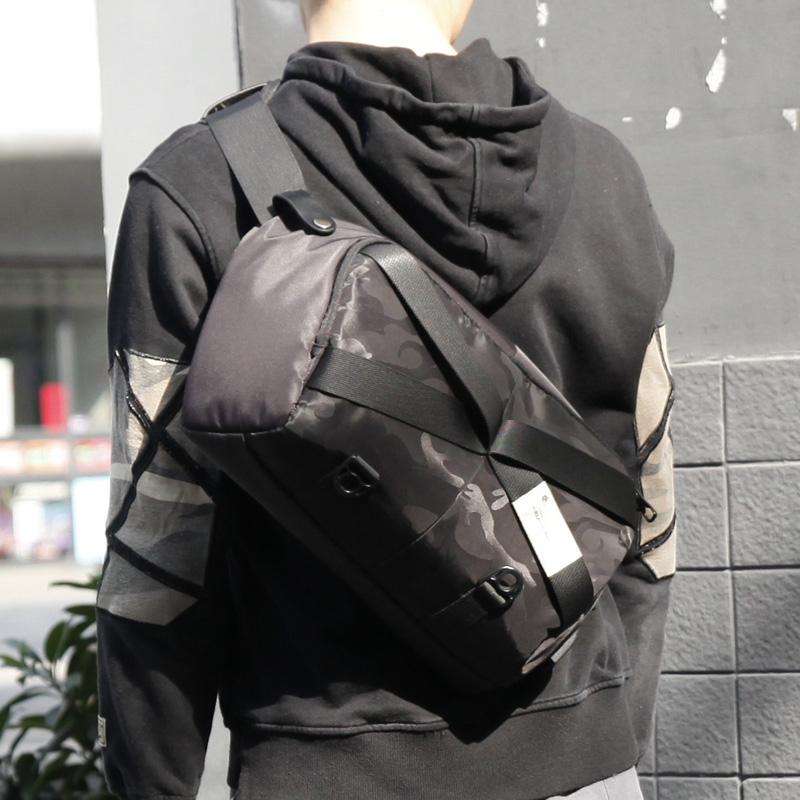Design: Cool Nylon Cloth Casual Men's Stitching Sling Bag Black One Shoulder Backpack Chest Bag For Men