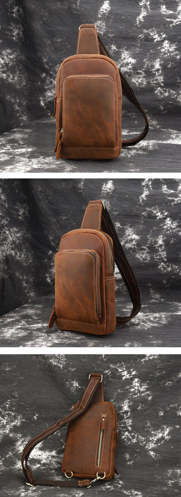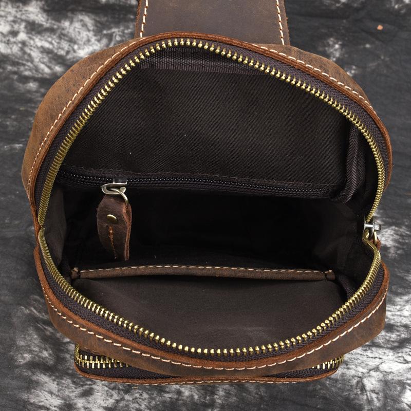 Style: Retro Mens Leather One Shoulder Backpack Chest Bag Sling Bags Crossbody Bag For Men