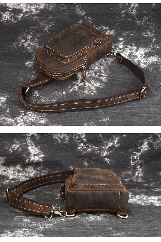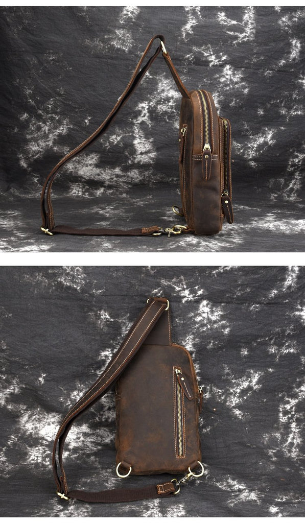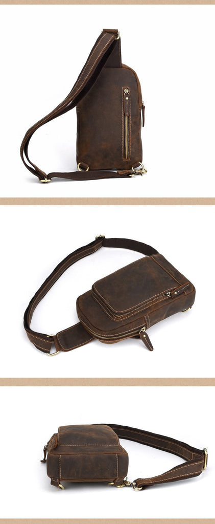Design: Retro Mens Leather One Shoulder Backpack Chest Bag Sling Bags Crossbody Bag For Men