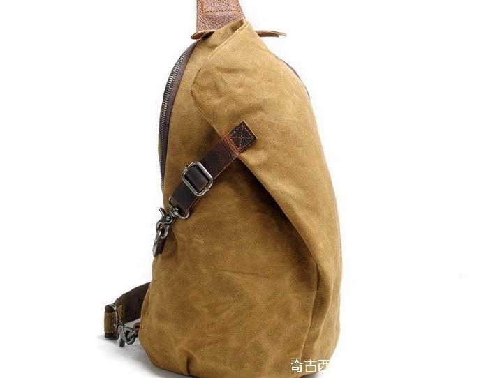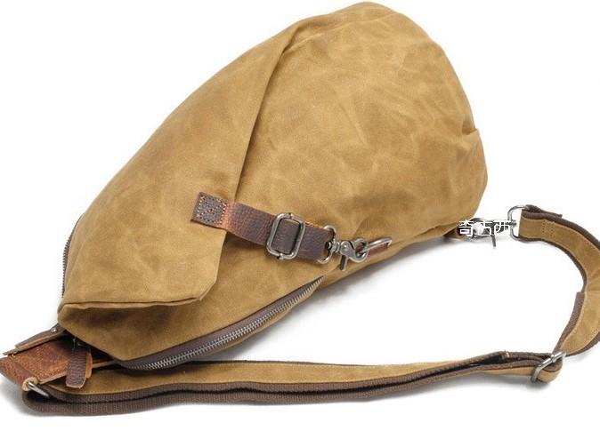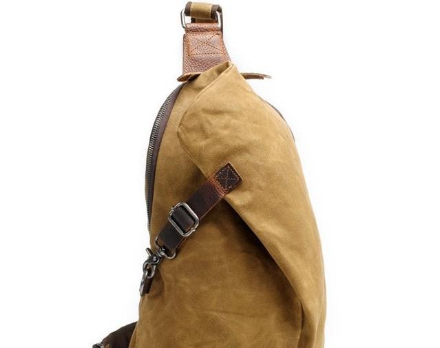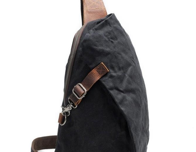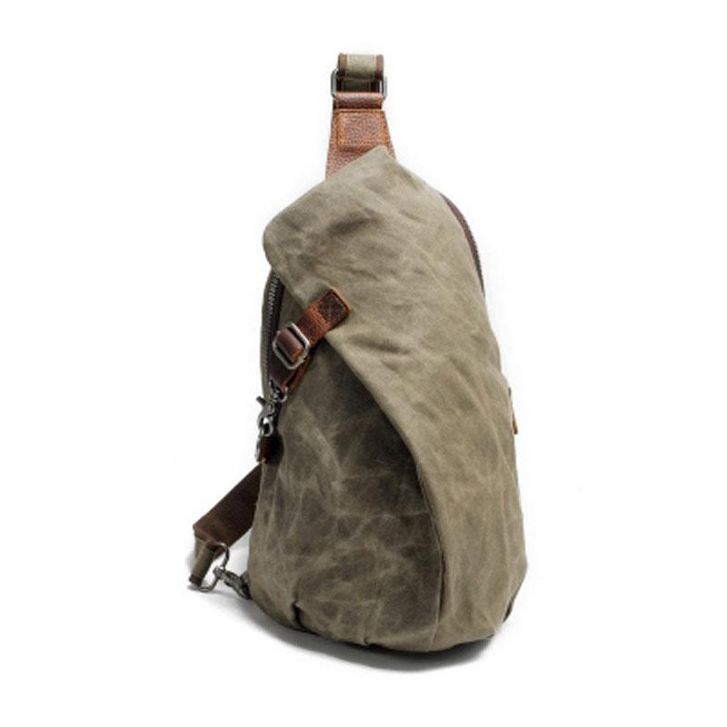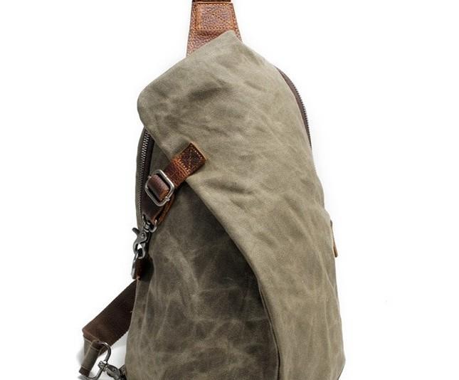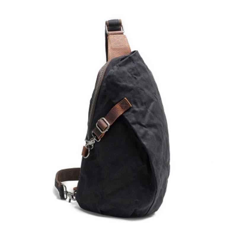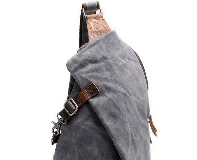 Design: Cool Gray Canvas Leather Mens Sling Bag Chest Bag One Shoulder Pack for men