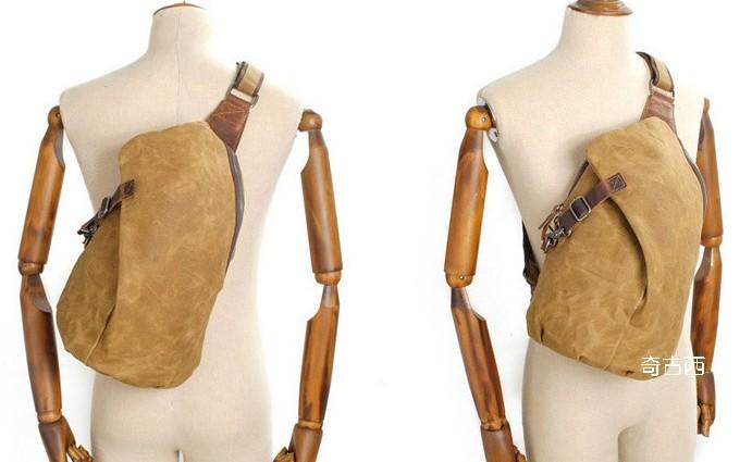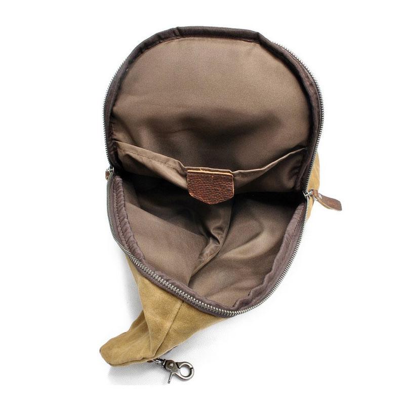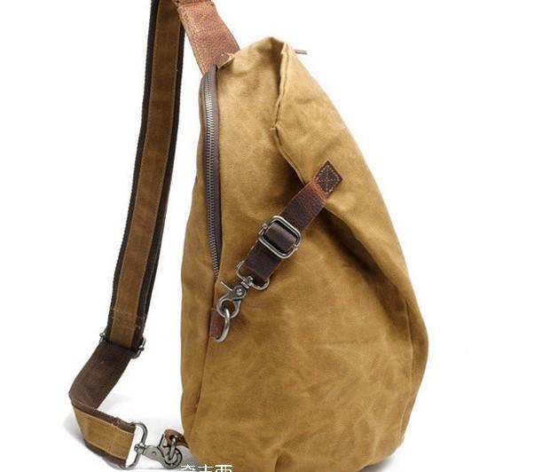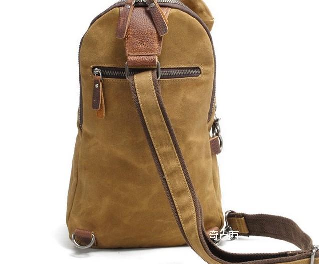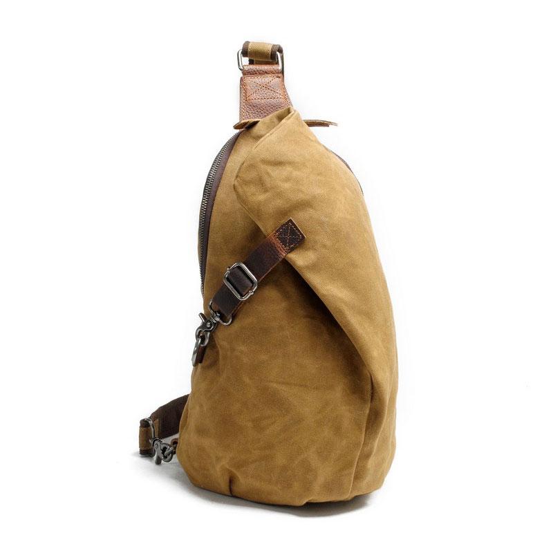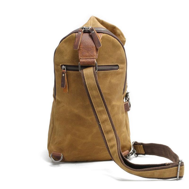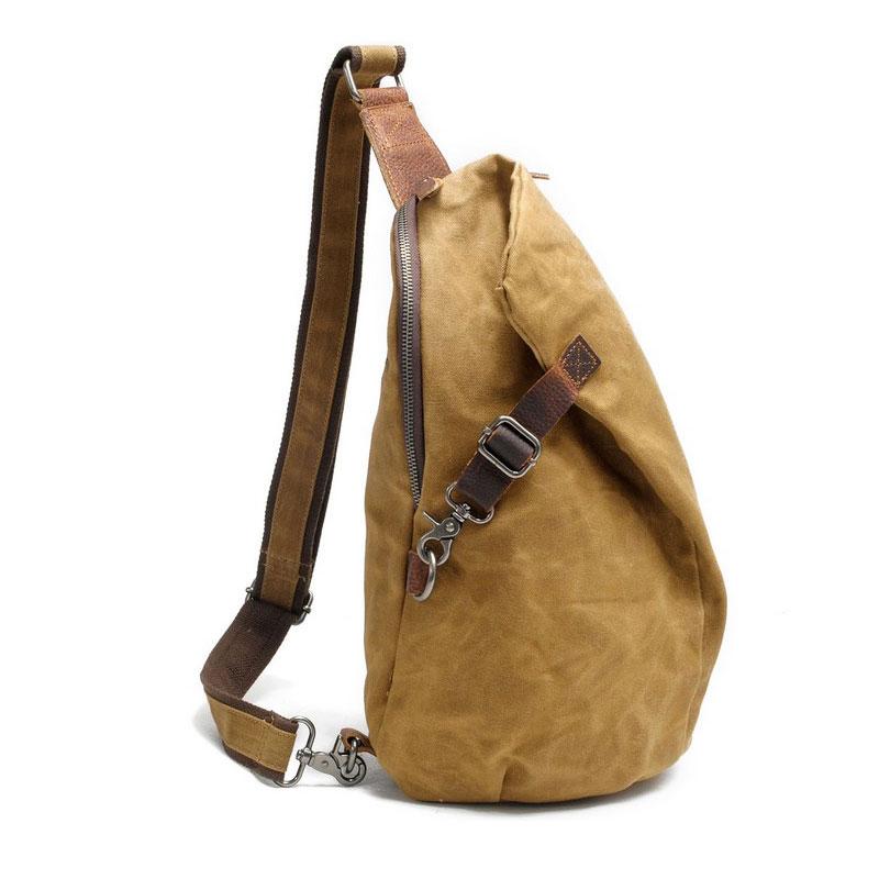Style: Cool Gray Canvas Leather Mens Sling Bag Chest Bag One Shoulder Pack for men