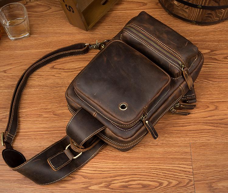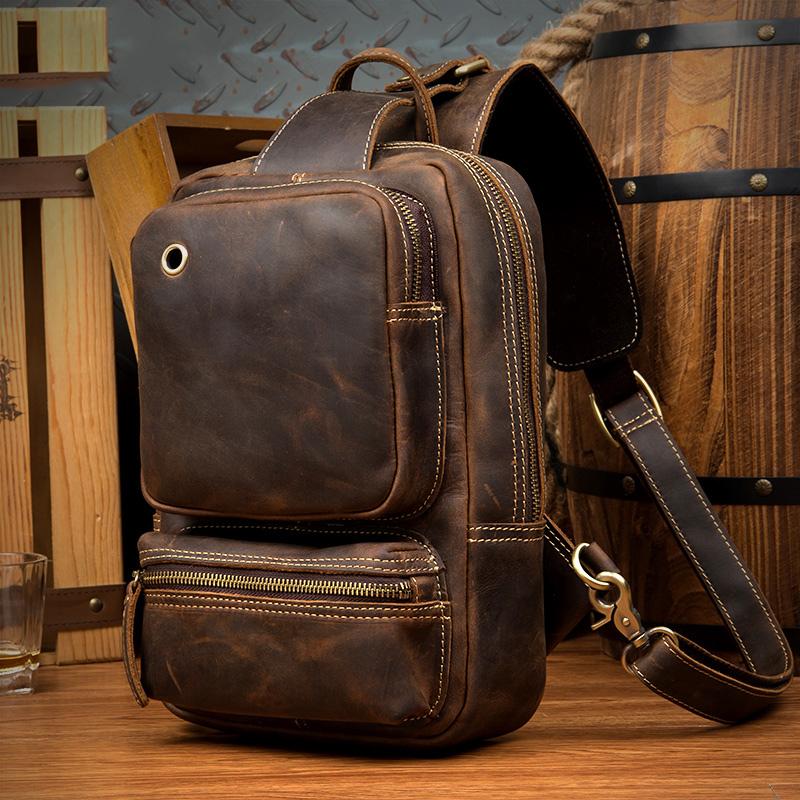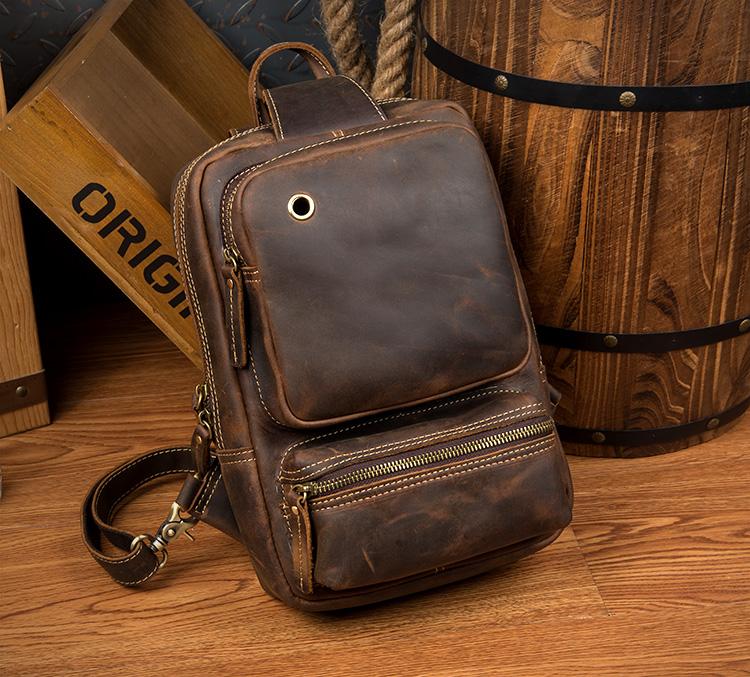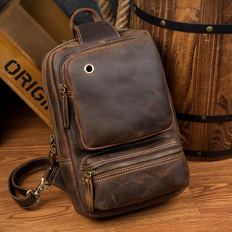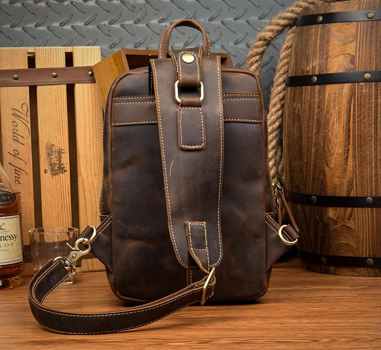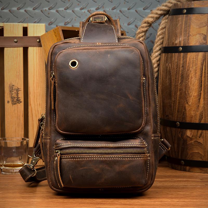 Design: Dark Brown Casual Mens Leather 10-inch Computer Backpacks Brown Travel Backpacks School Backpacks for men