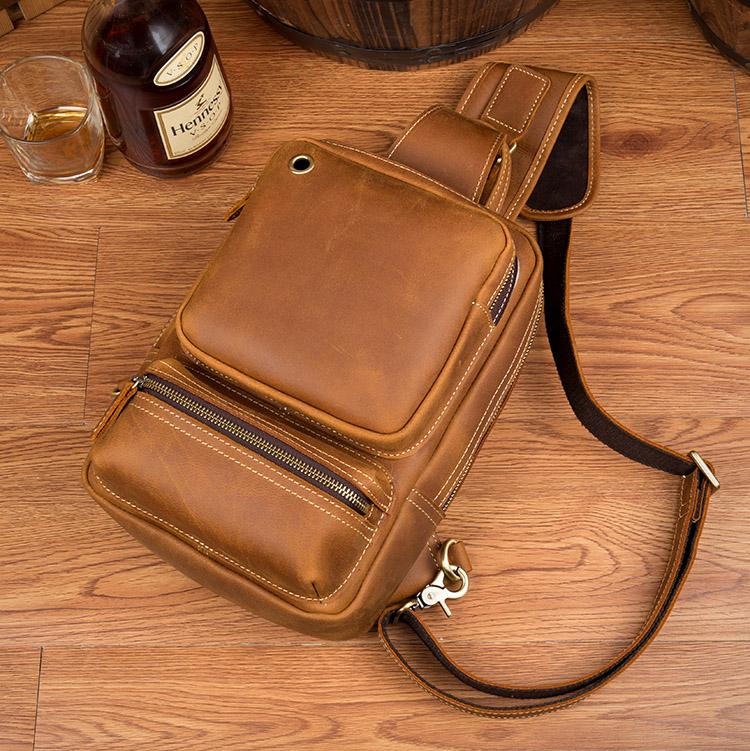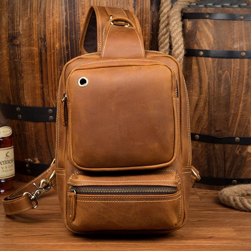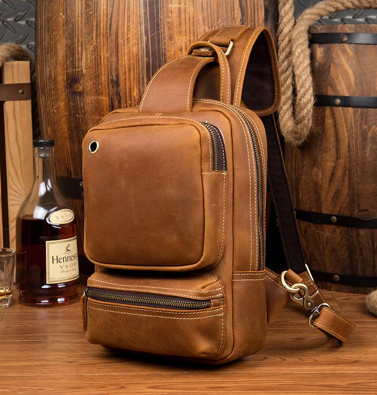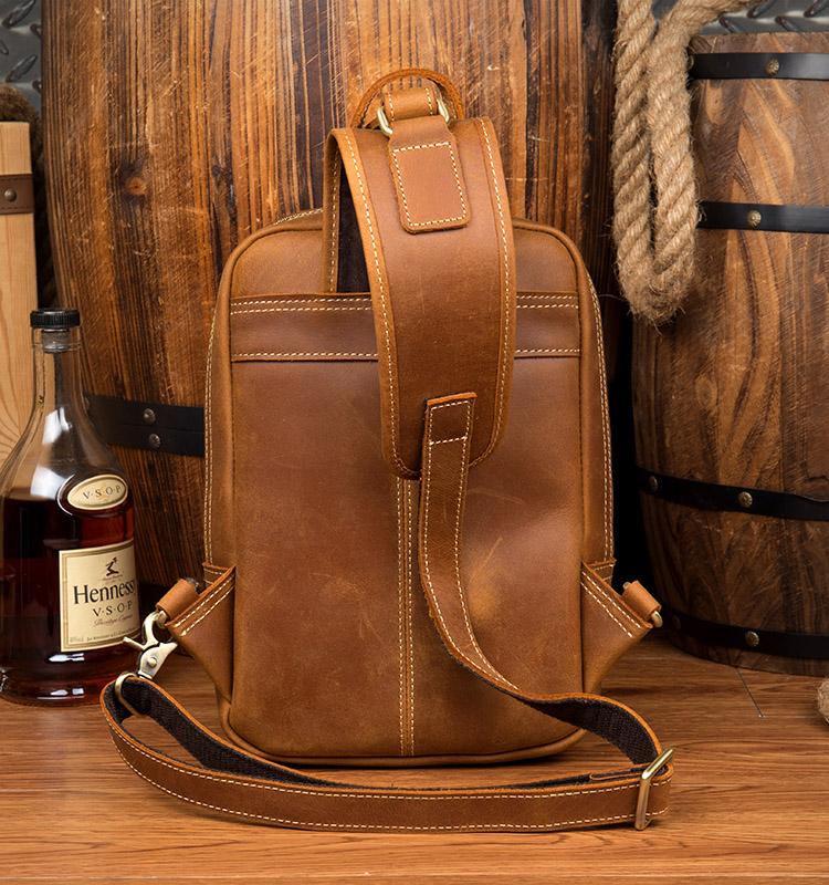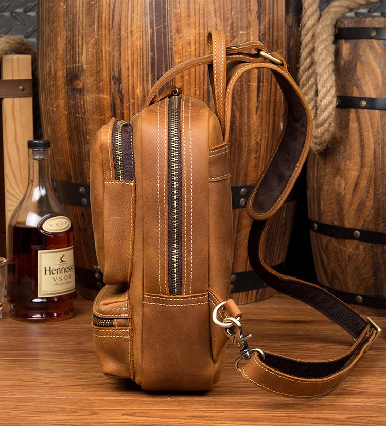 Design: Dark Brown Casual Mens Leather 10-inch Computer Backpacks Brown Travel Backpacks School Backpacks for men