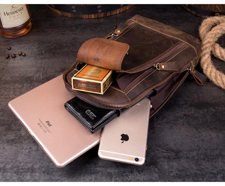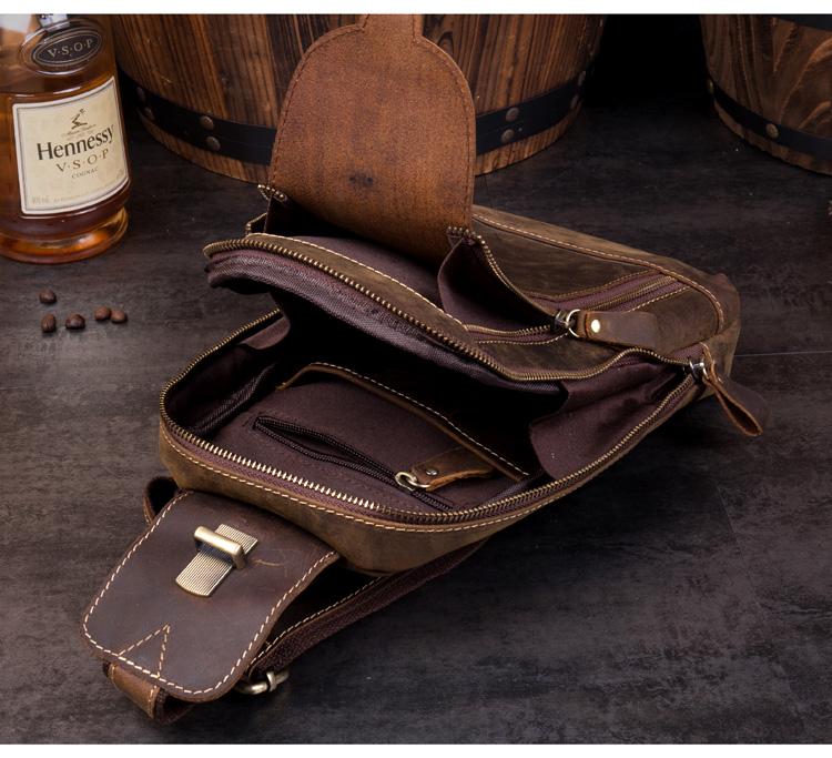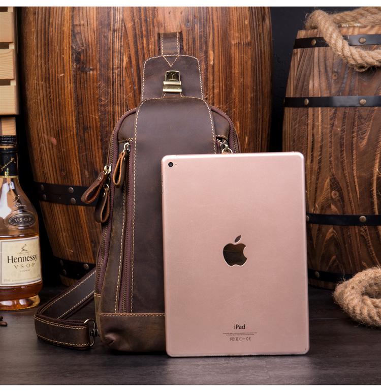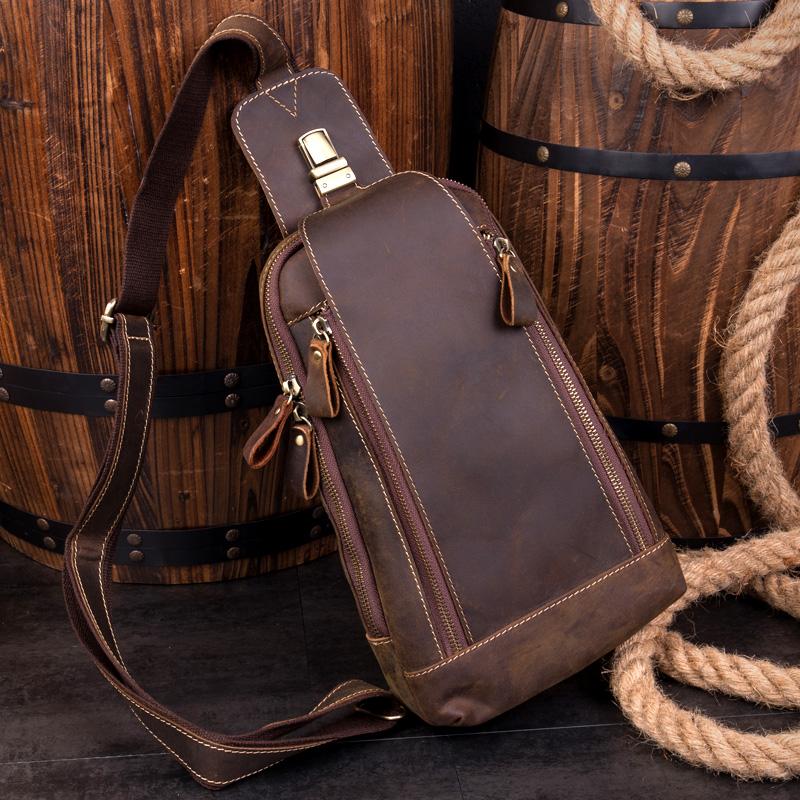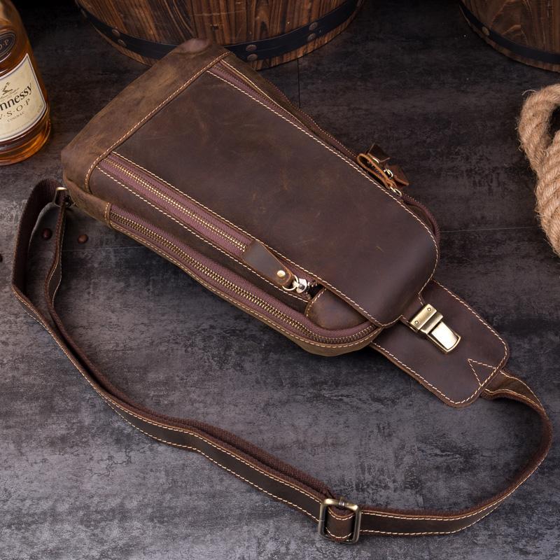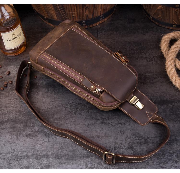 Design: Dark Brown Leather Mens 8 inches Cool Sling Bag Crossbody Bags Chest Bag for men