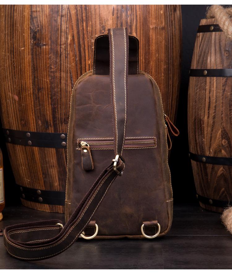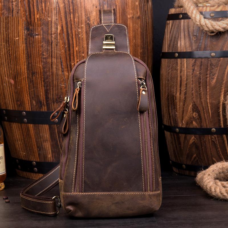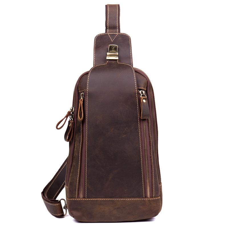Cool Brown Leather Mens Sling Bag Sling Pack Crossbody Backpack Chest Bag for men