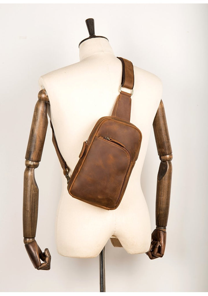 Style: Dark Brown Leather Mens Cool 8 inches Sling Bags Brown Crossbody Bag Chest Bag for men