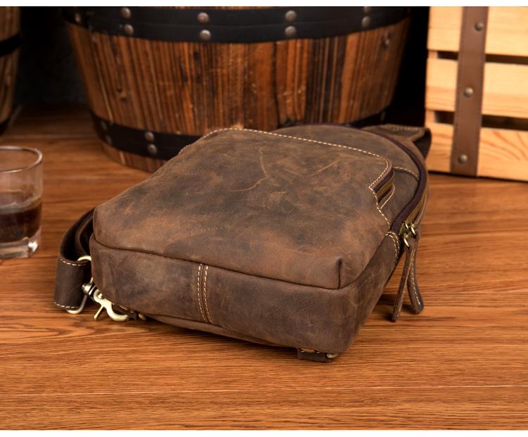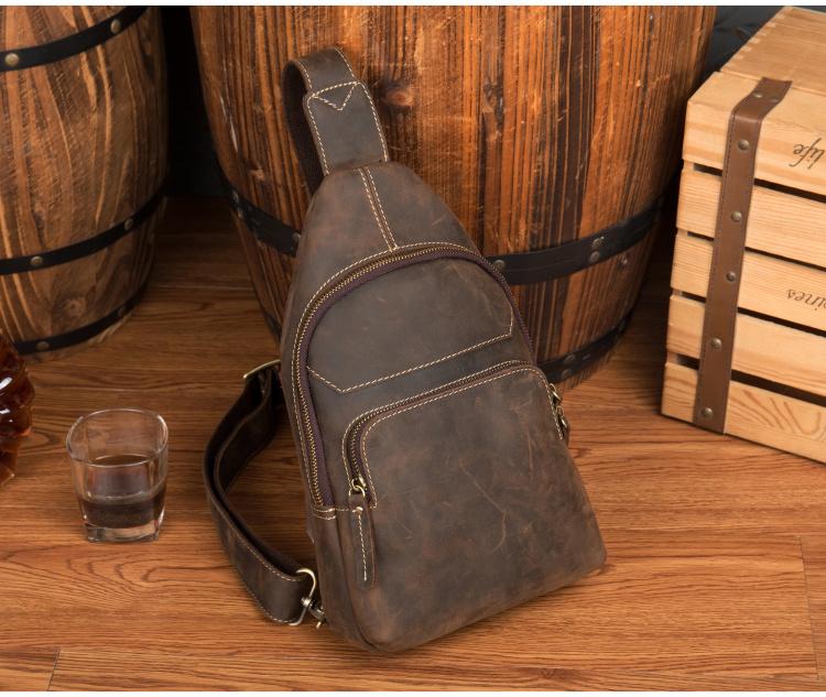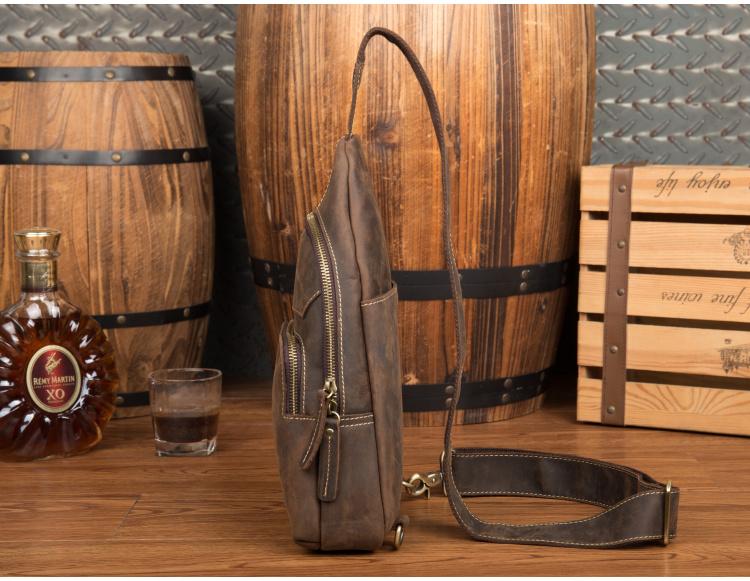 Design: Dark Brown Leather Mens Cool 8 inches Sling Bags Crossbody Bag Chest Bag for men