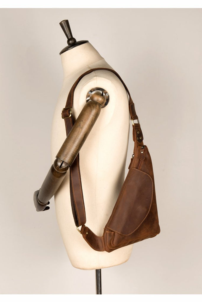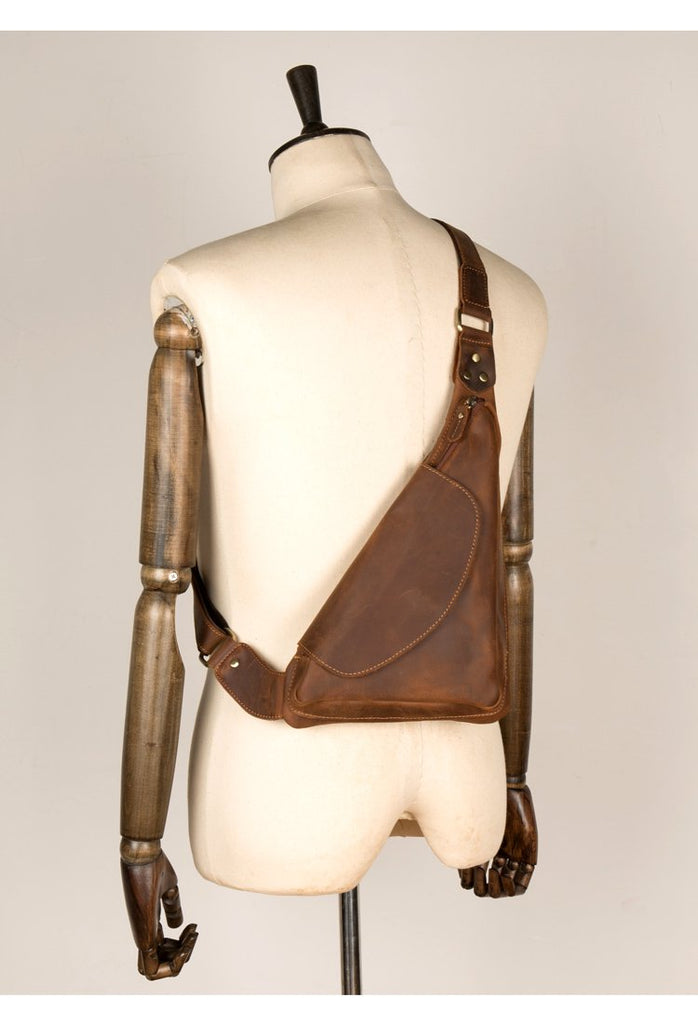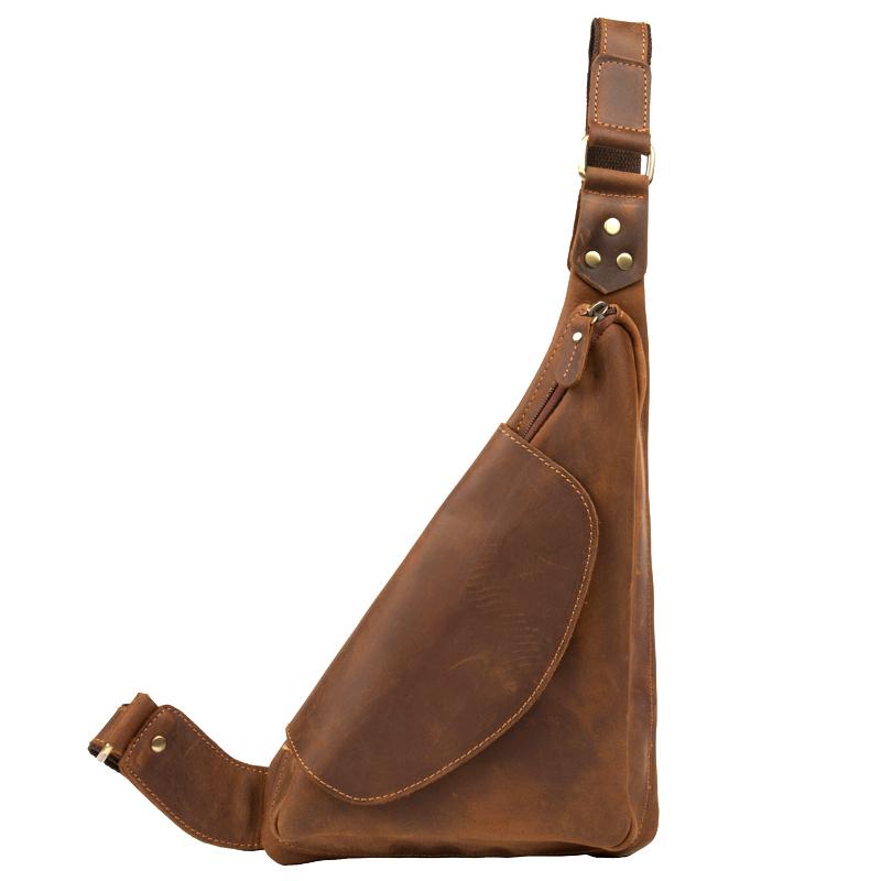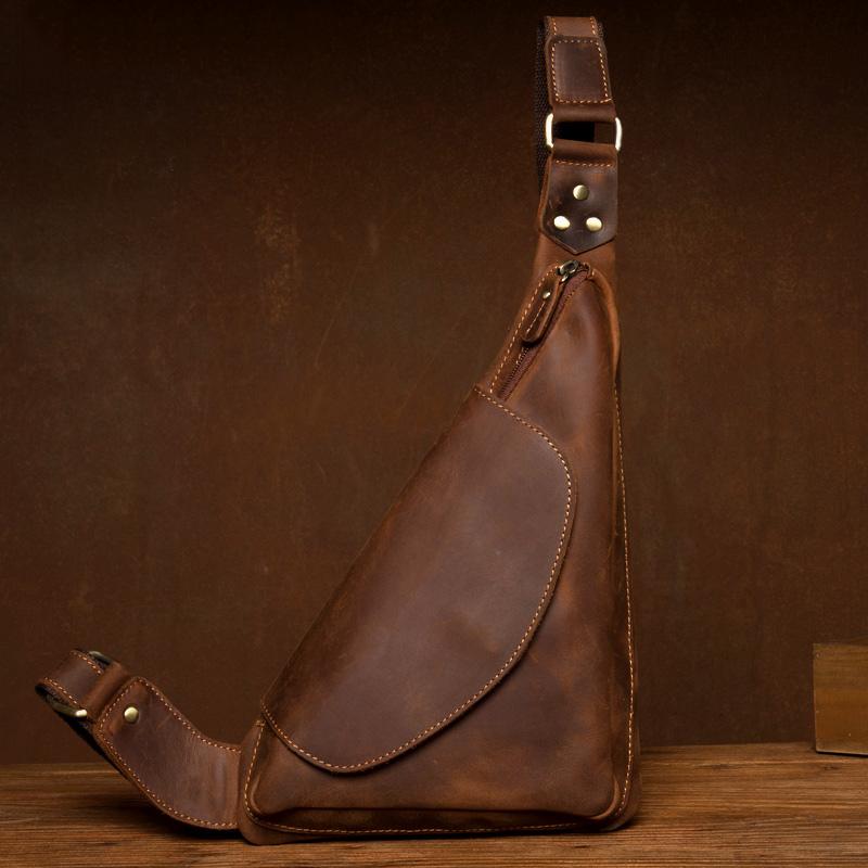 Vintage Brown Leather Mens Sling Bag Coffee Cool Crossbody Pack Chest Bag for men