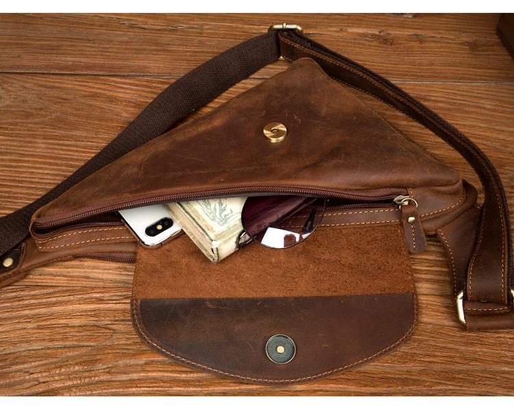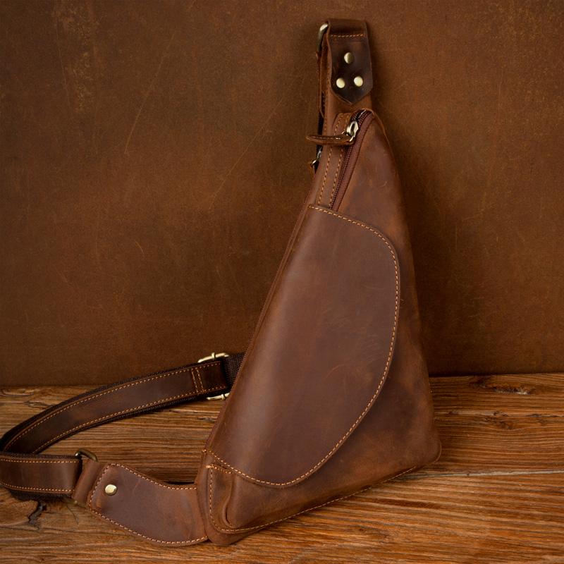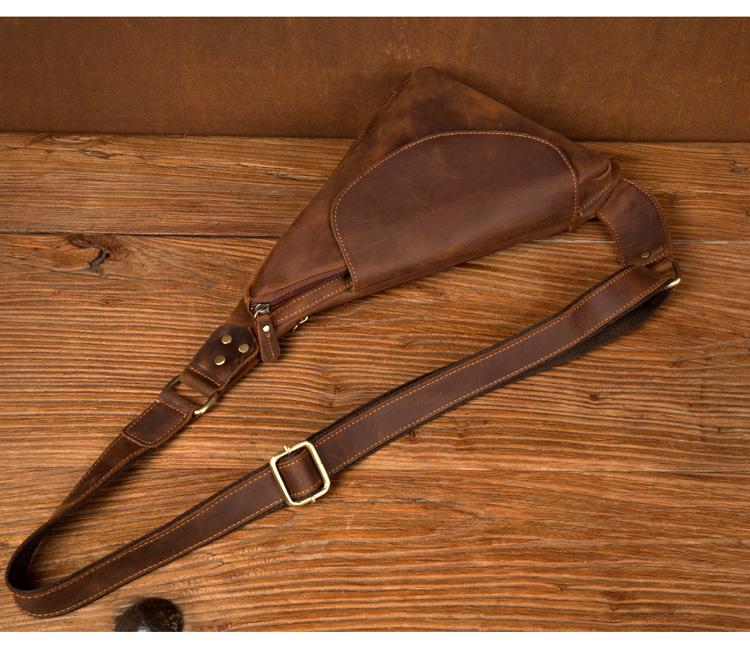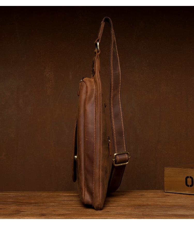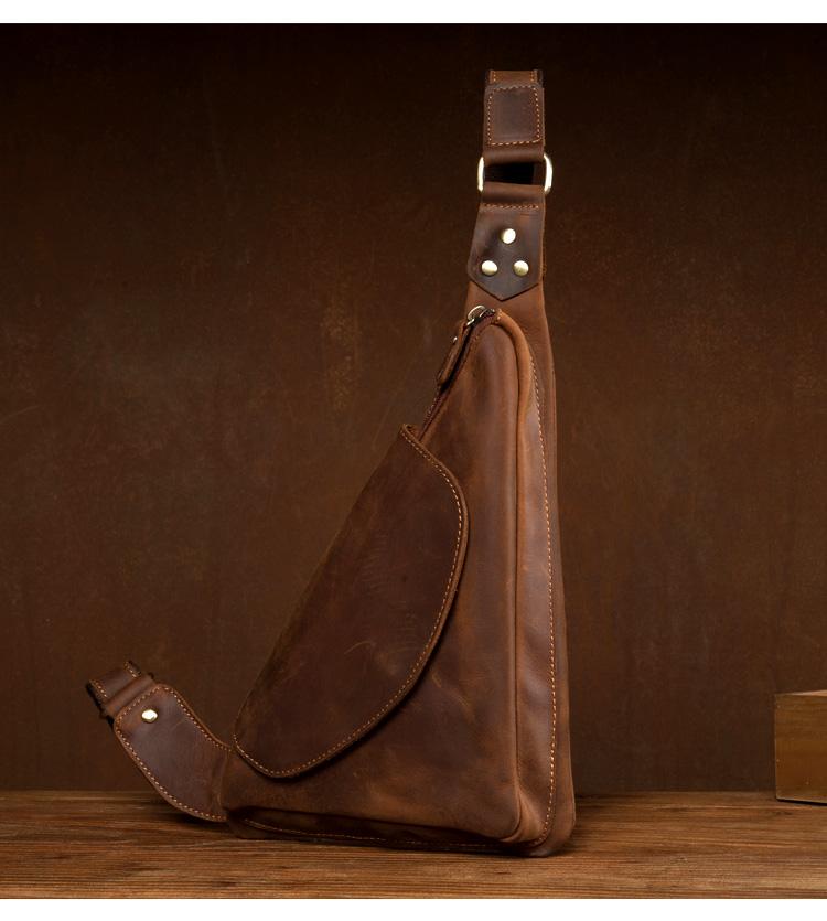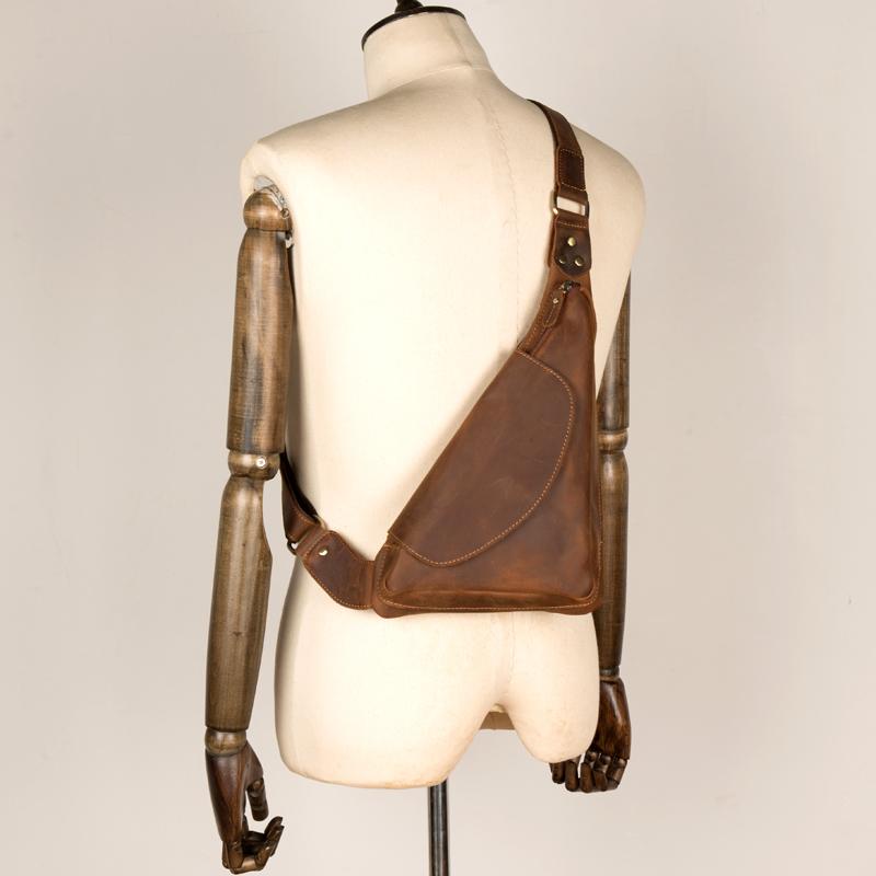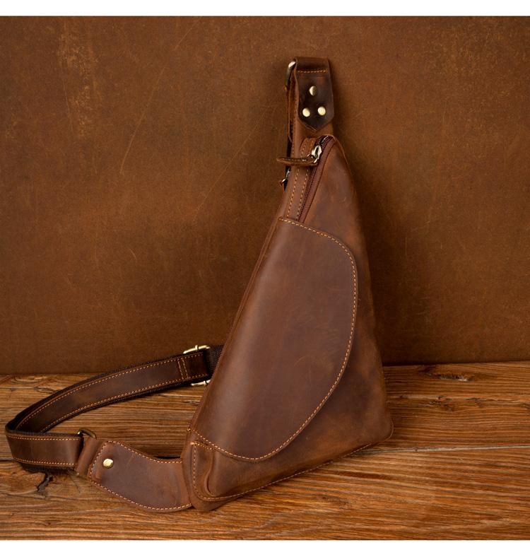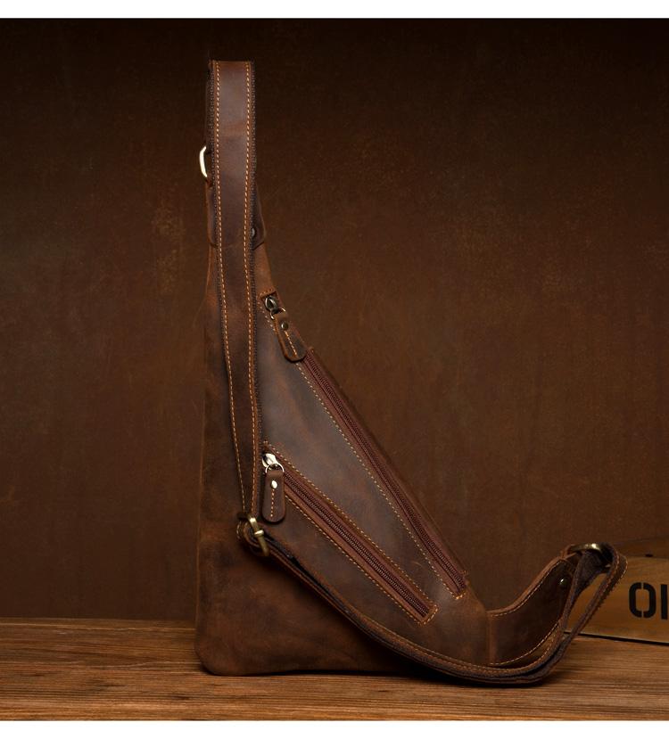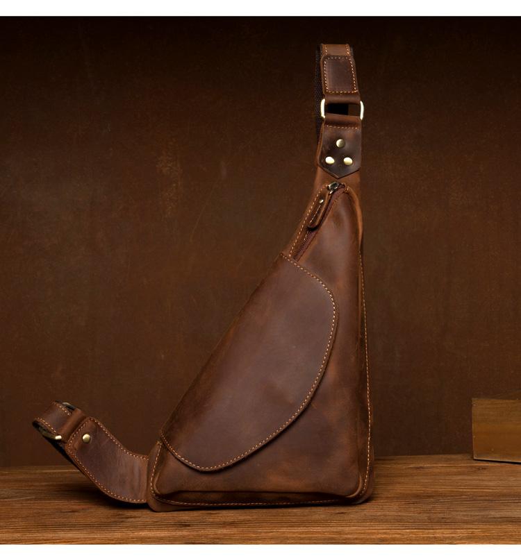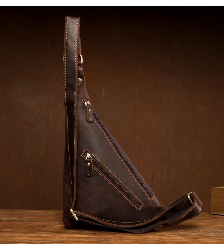 Design: Dark Brown Leather Mens Cool Sling Bag Crossbody Bag Chest Bag for men
