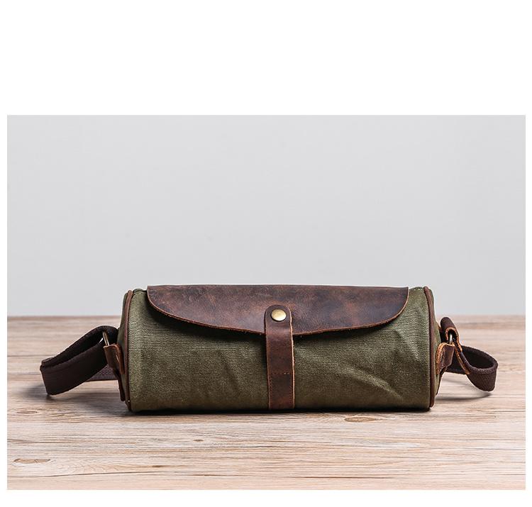 Design: Dark Gray Leather Mens Army Green Barrel Postman Bag Orange Bucket Messenger Bag Side Bag For Men