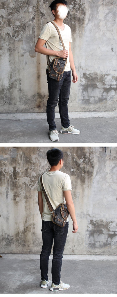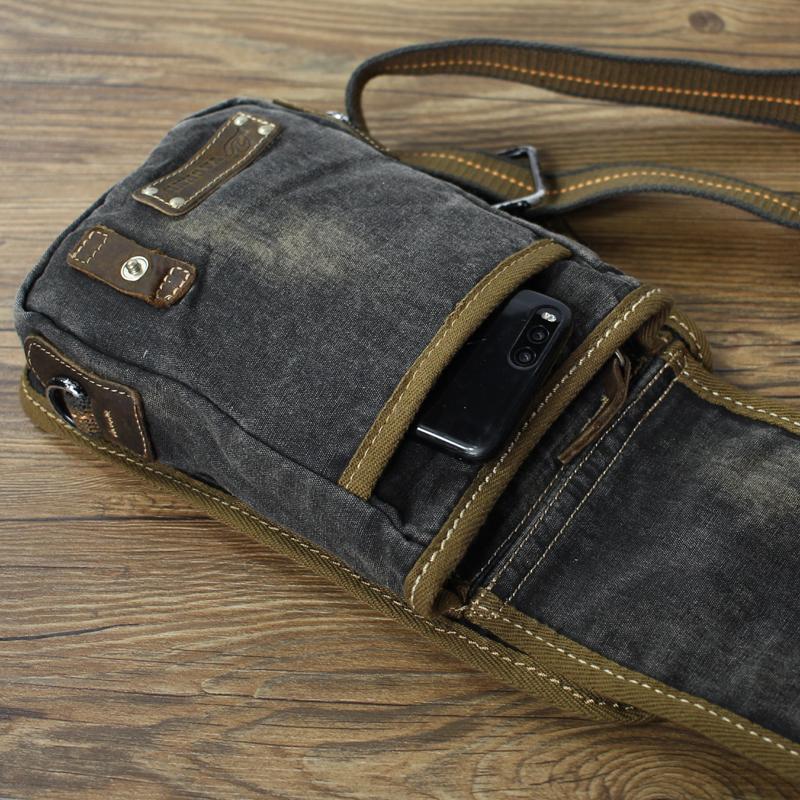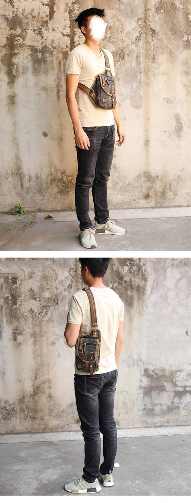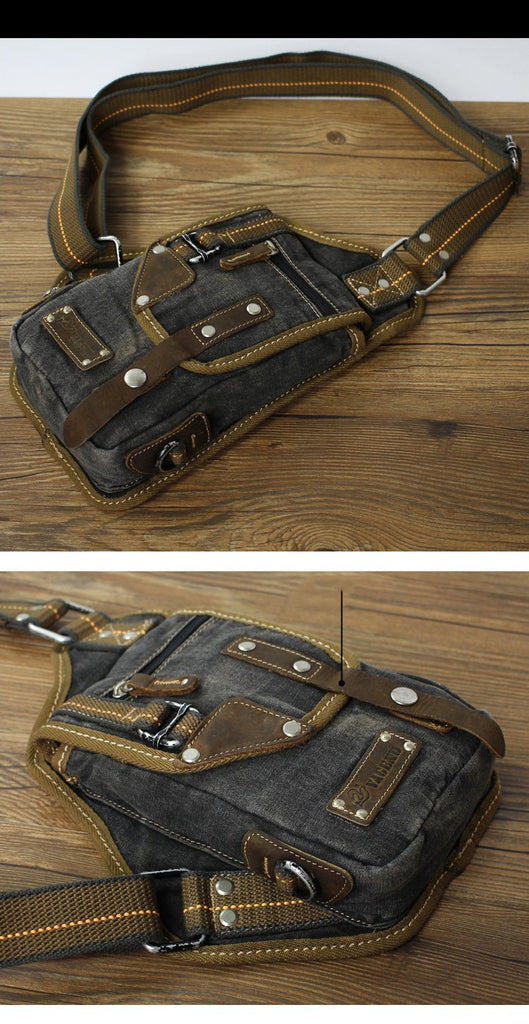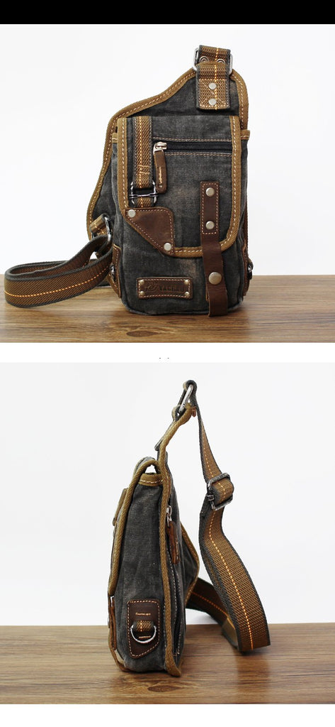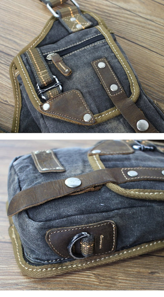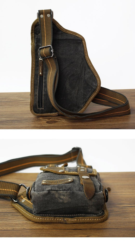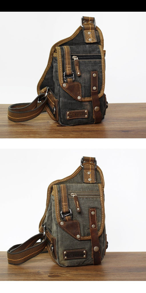 Canvas Black Mens Sling Bag Green Chest Bag One Shoulder Backpack For Men