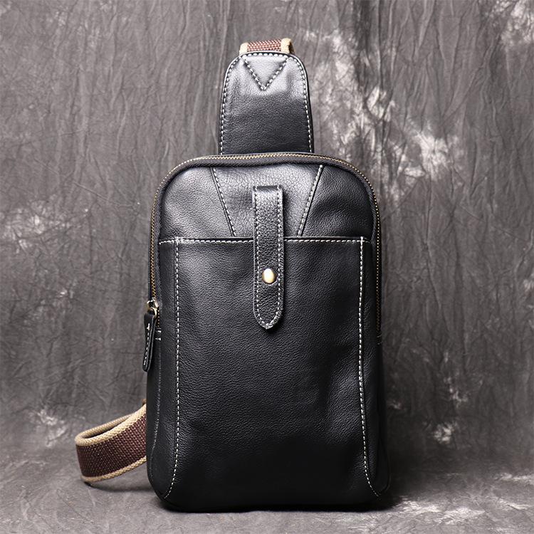 Style: Fashion Black Leather Backpack Men's 8-inch Sling Bag Chest Bag One shoulder Backpack Sports Bag For Men