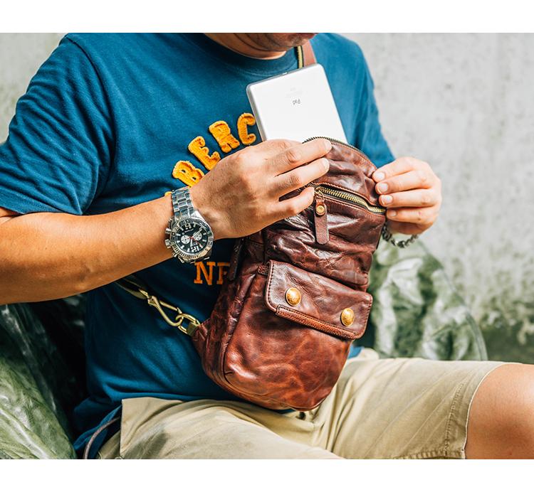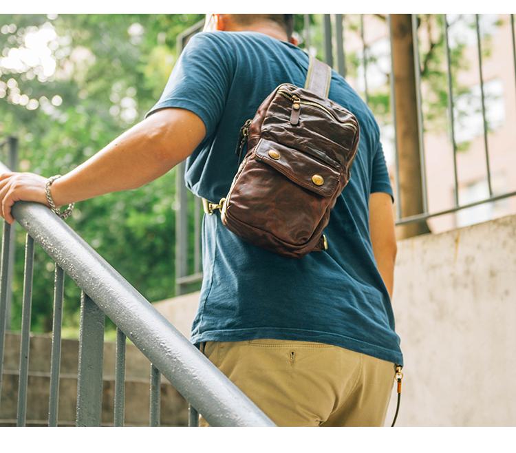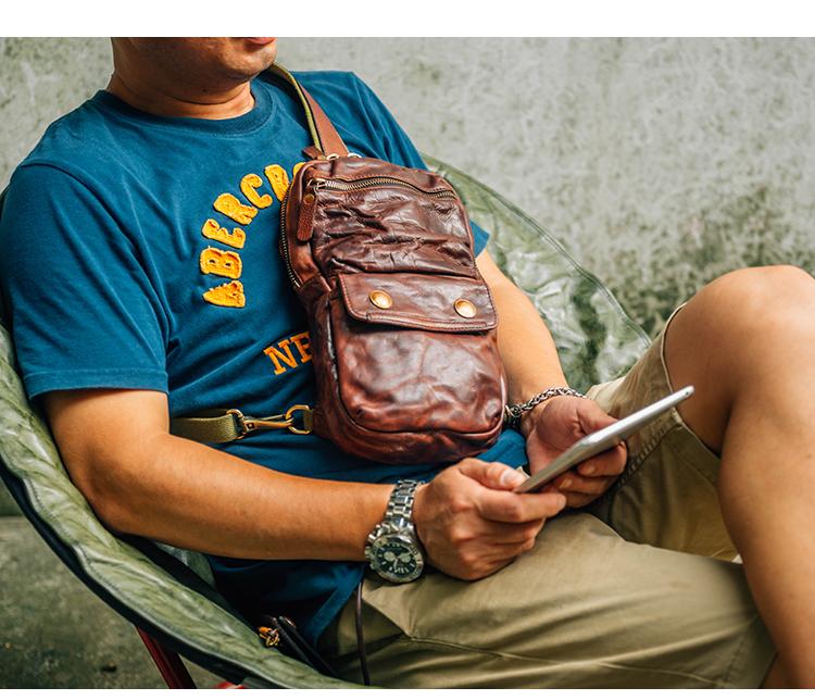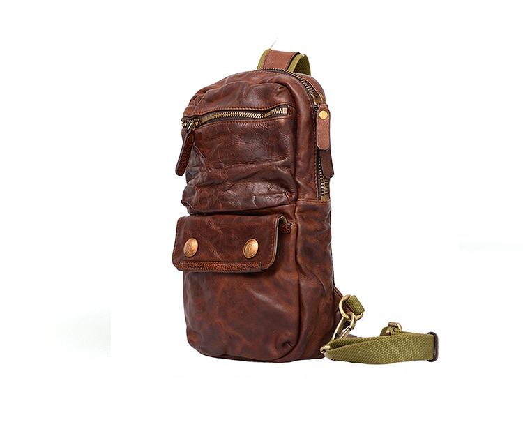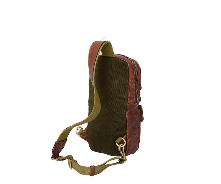 Design: Fashion Black Leather Men Army Green Chest Bag Messenger Bag One Shoulder Backpack For Men