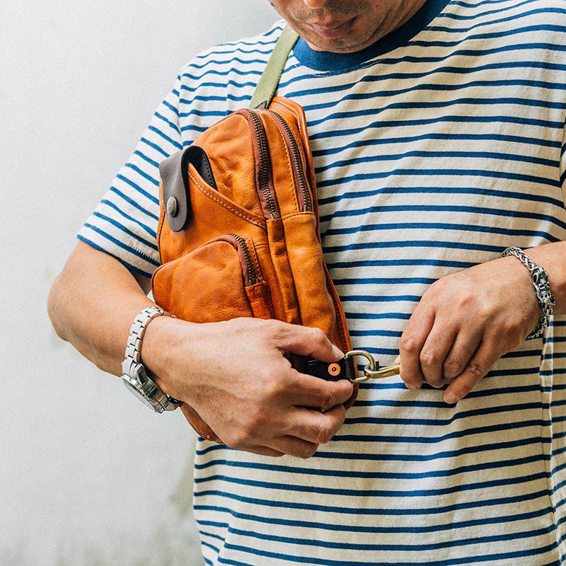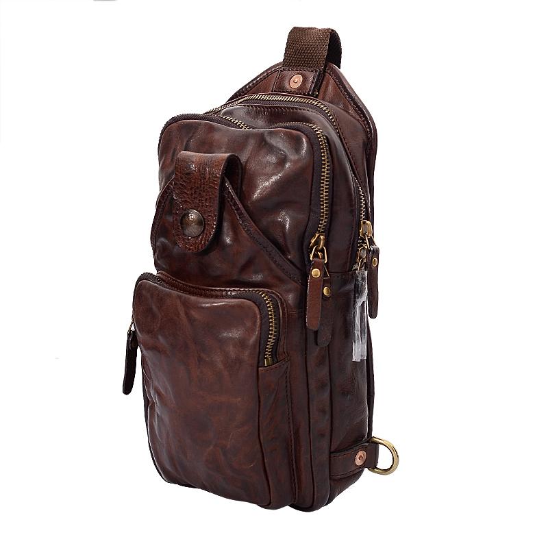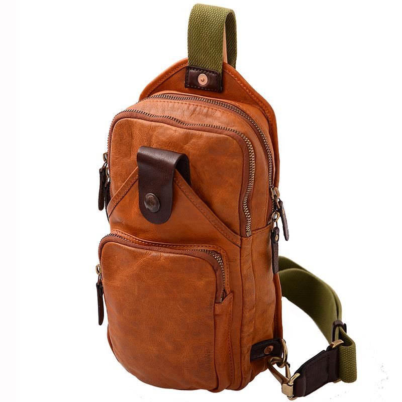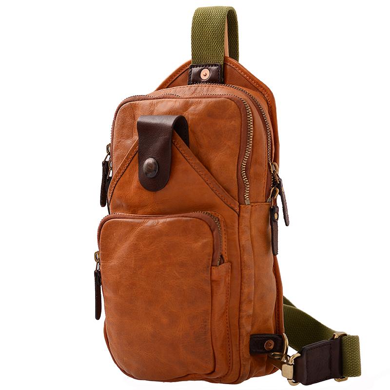 Style: Fashion Black Leather Men Light Brown Chest Bag Messenger Bag One Shoulder Backpack For Men