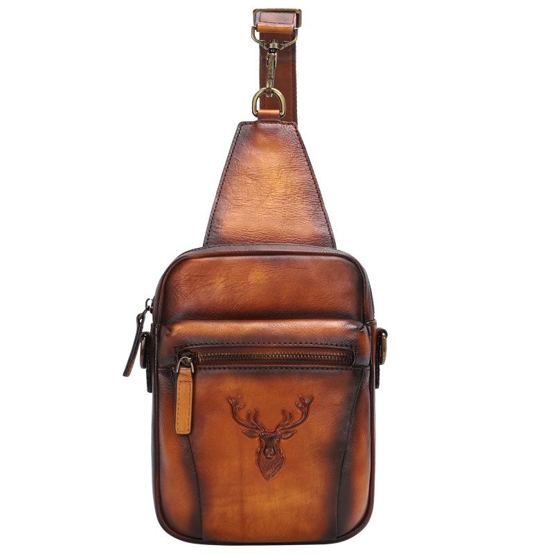 Design: Fashion Brown Leather Men's 8-inches Sling Bag Chest Bag One shoulder Backpack Sling Bag For Men