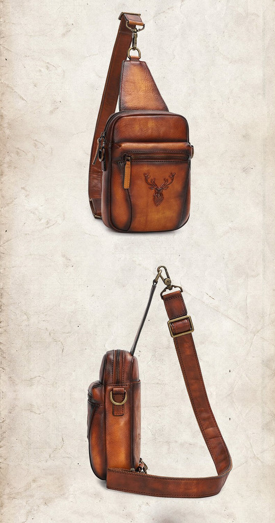 Style: Fashion Brown Leather Men's 8-inches Sling Bag Chest Bag One shoulder Backpack Sling Bag For Men