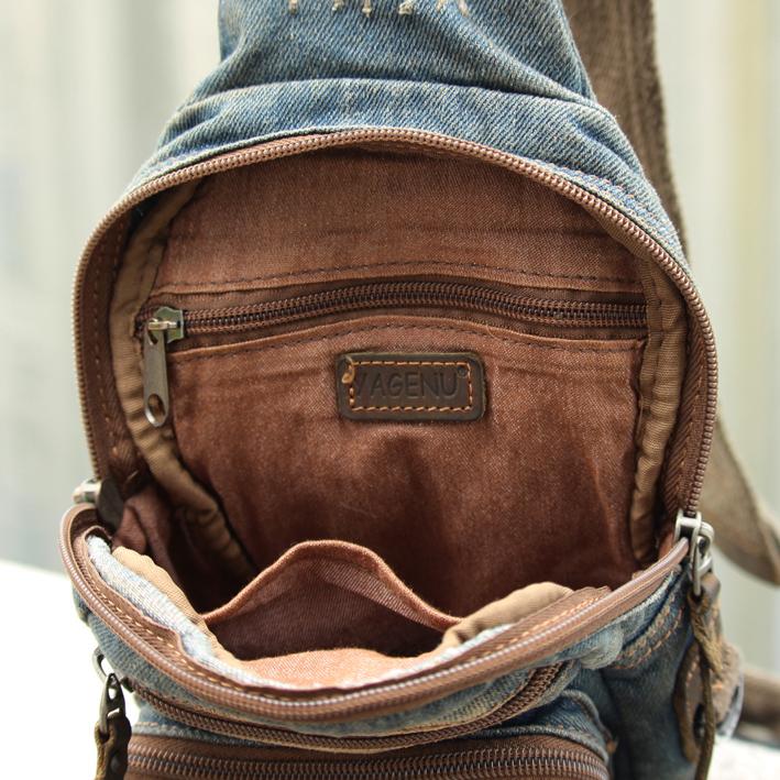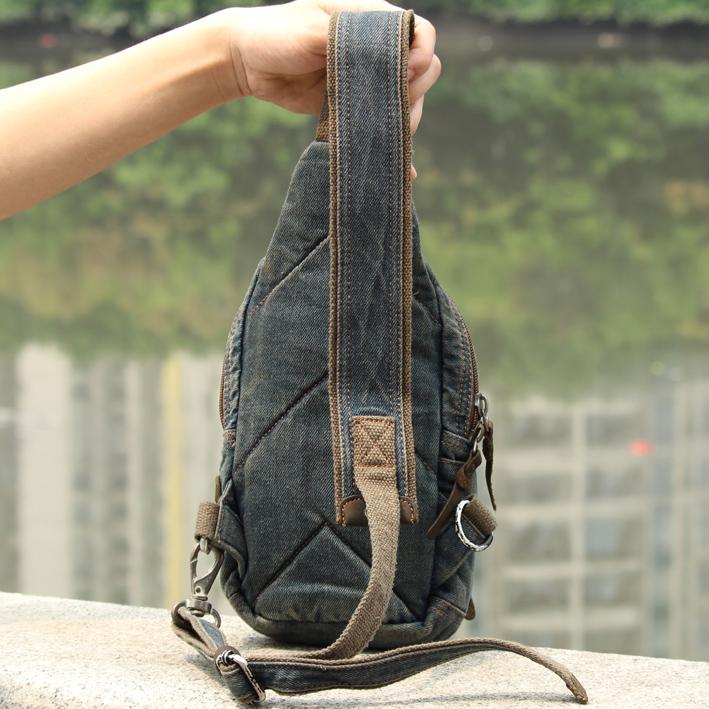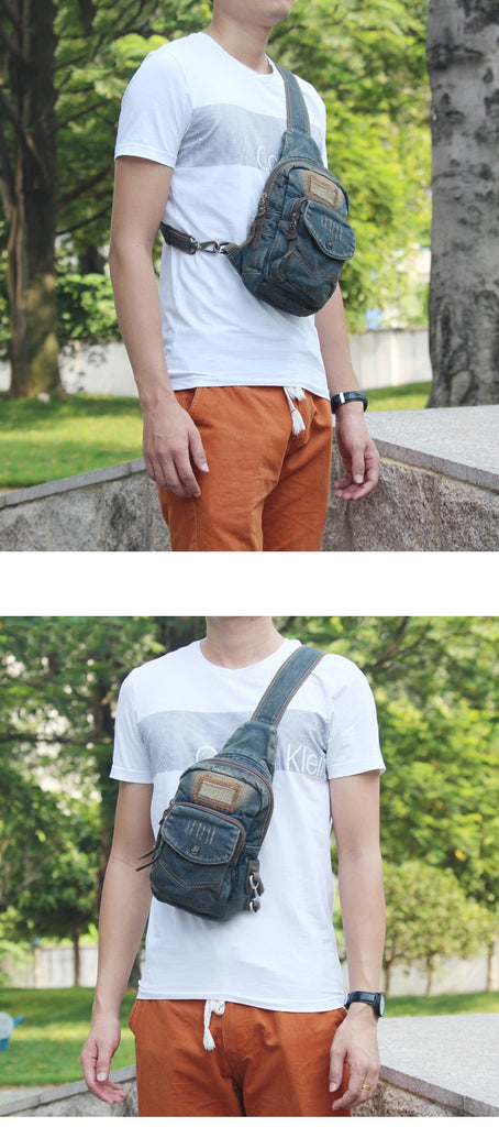 Style: Canvas Denim Blue Mens Sling Bag Chest Bags One Shoulder Backpack For Men
