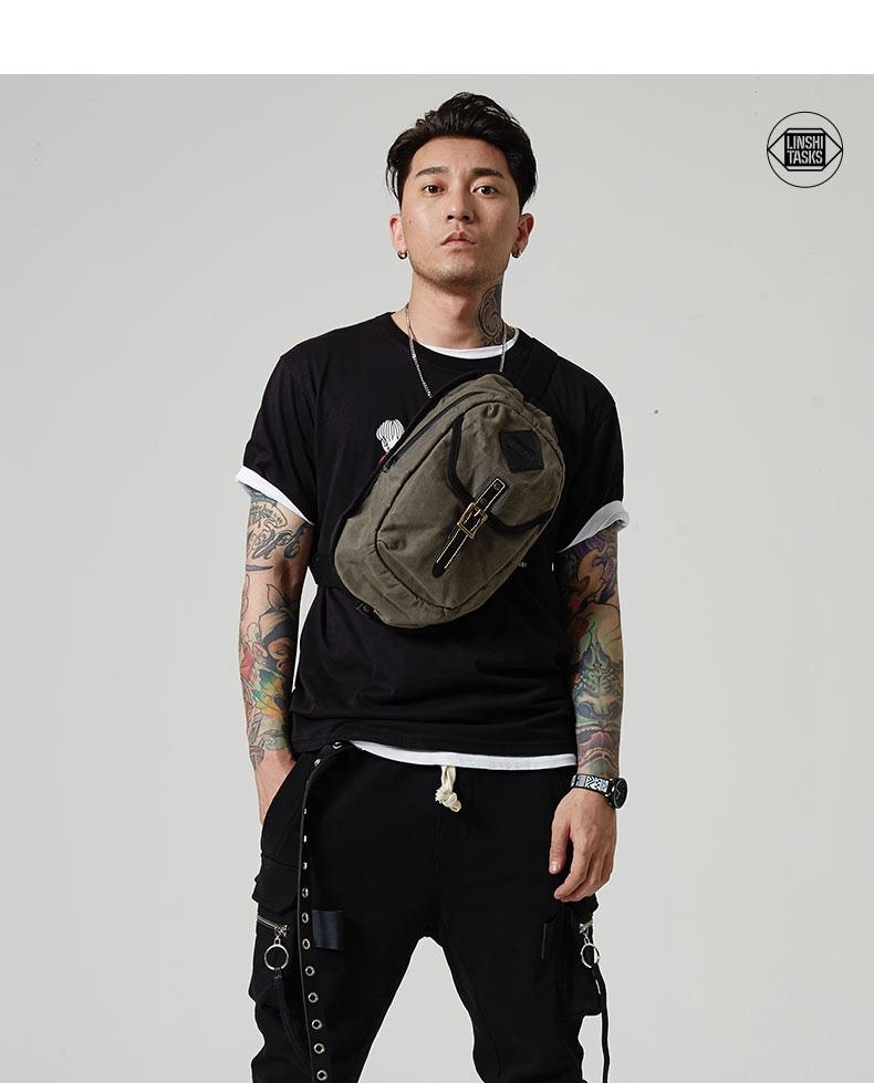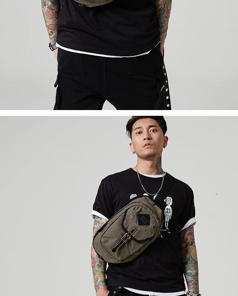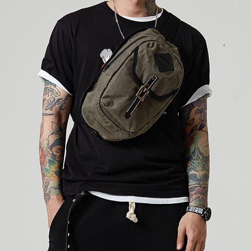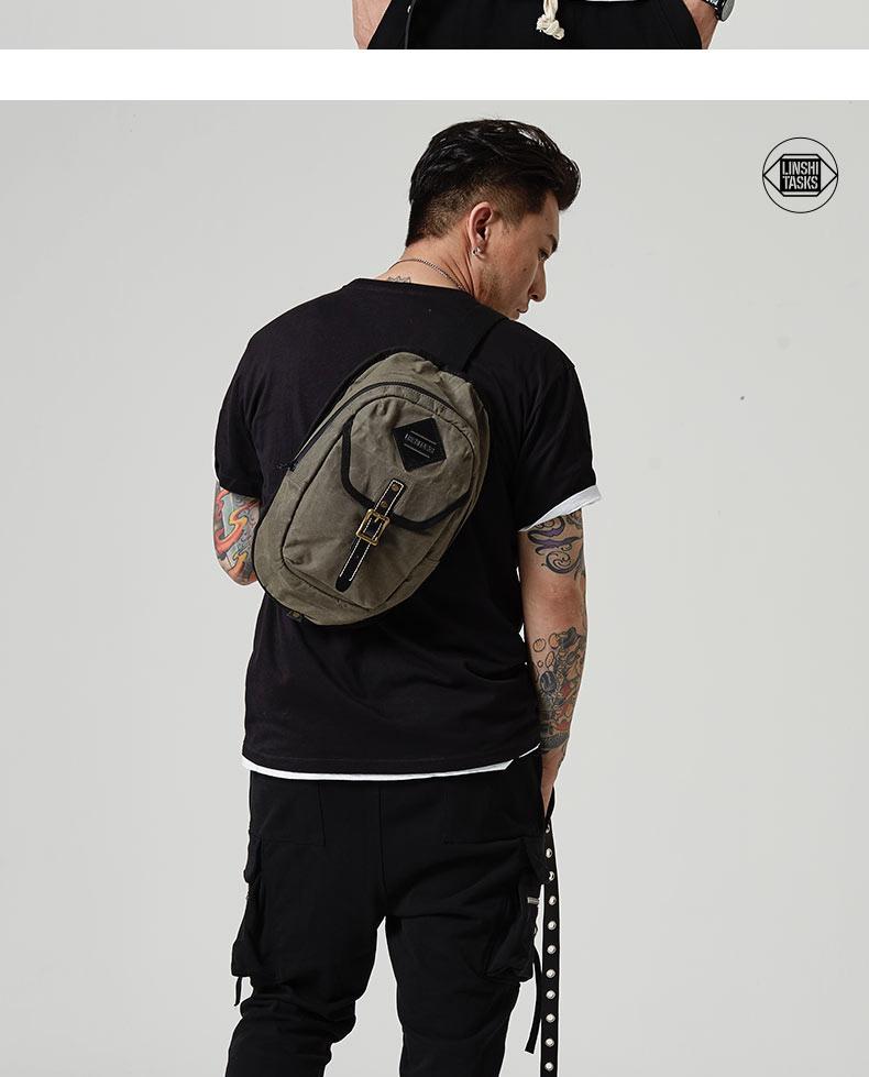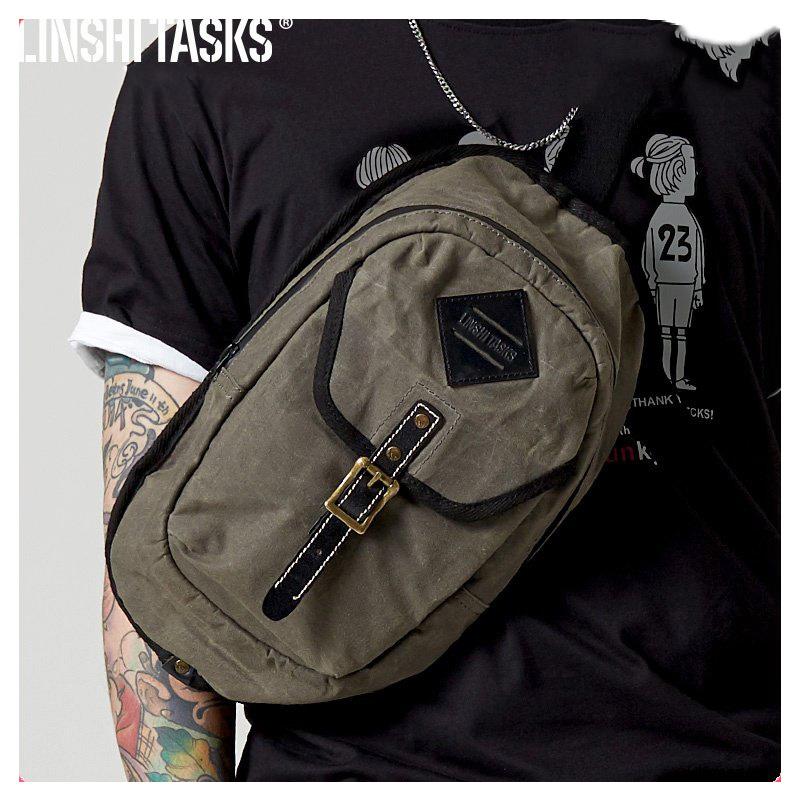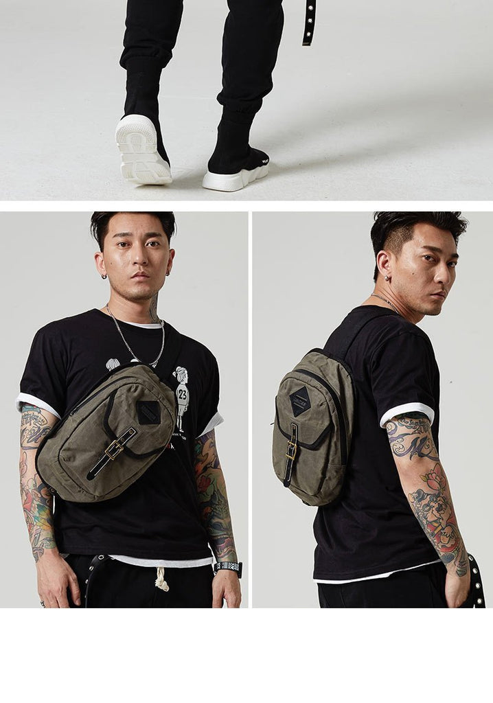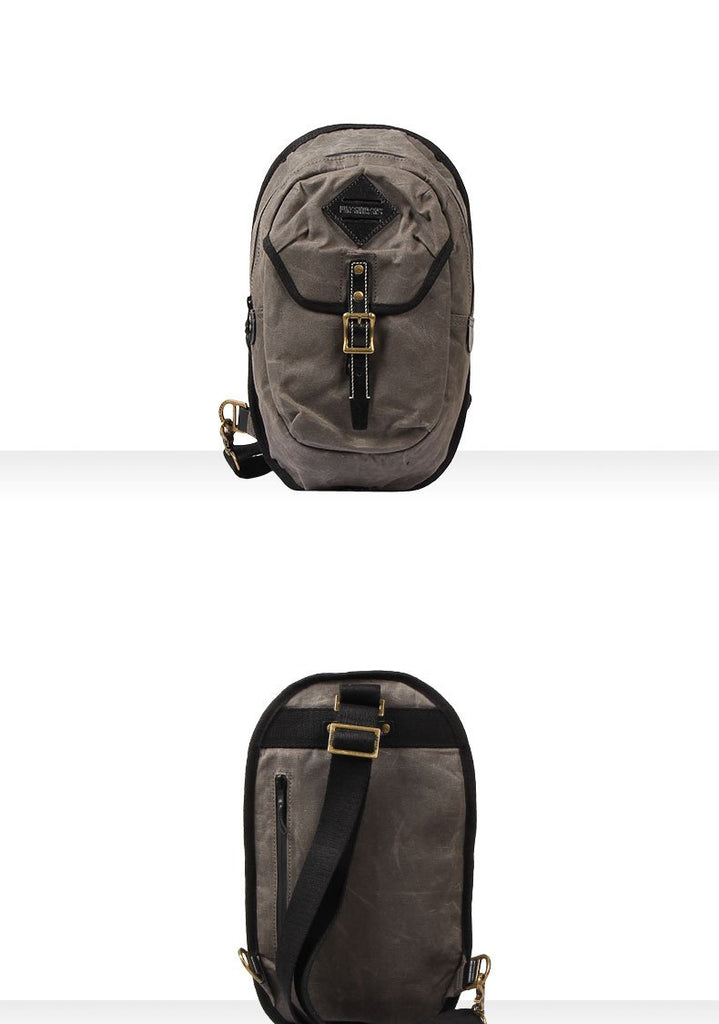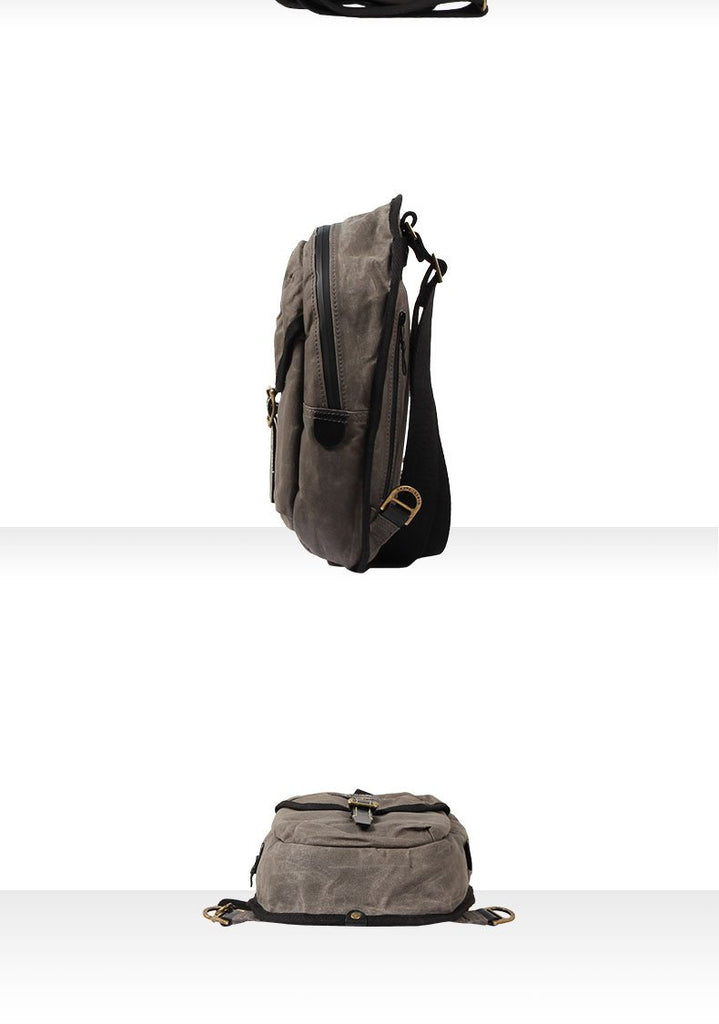Style: Fashion Waxed Canvas Mens Sling Bag Canvas Sling Pack Blue Canvas Sling Backpack for Men