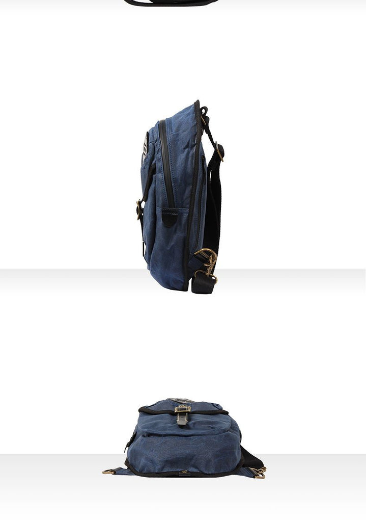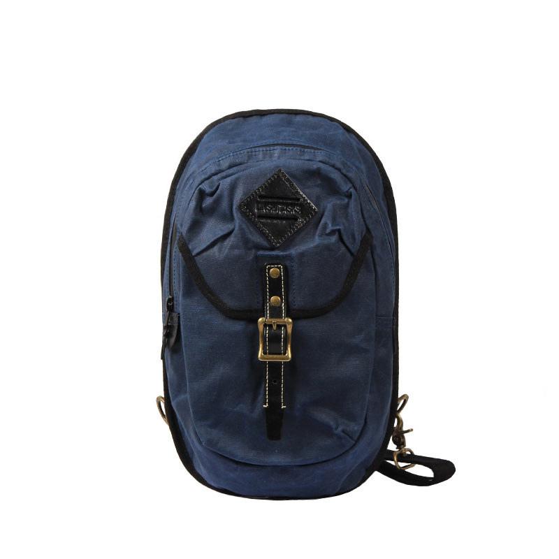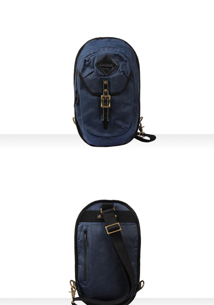 Design: Fashion Waxed Canvas Mens Sling Bag Canvas Sling Pack Blue Canvas Sling Backpack for Men
