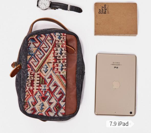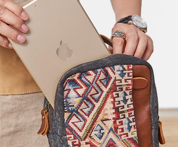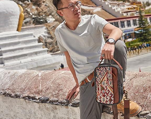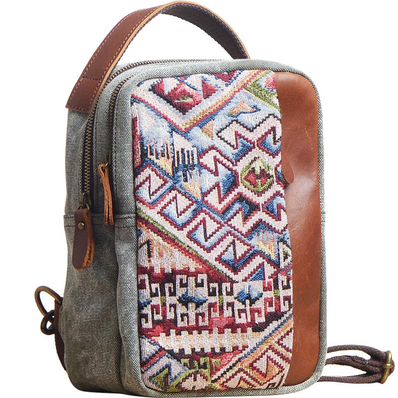Folk Canvas Leather Mens Sling Bag Chest Bag One Shoulder Pack for men