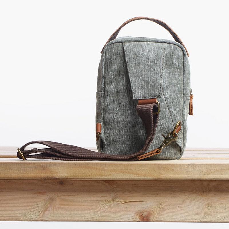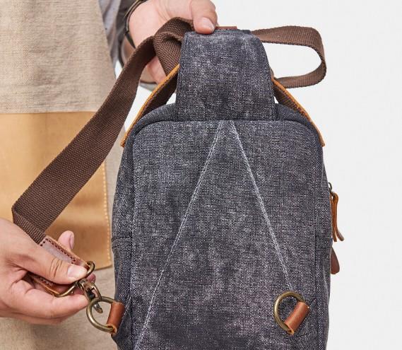 Design: Cool Canvas Leather Mens Sling Bag Chest Bag One Shoulder Pack for men