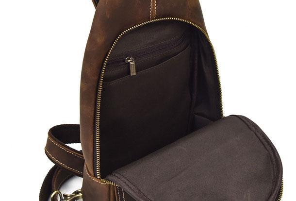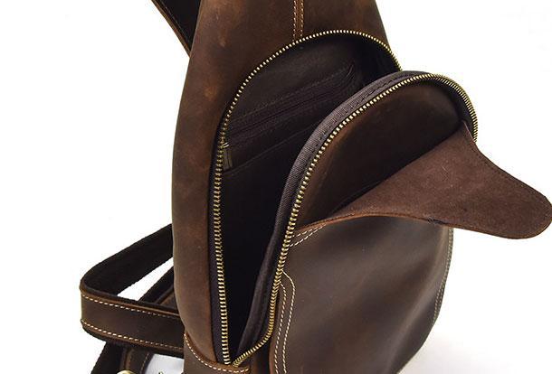 Style: Genuine Leather Cool Chest Bag Sling Bag Crossbody Bag Travel Bag Hiking Bag For Mens