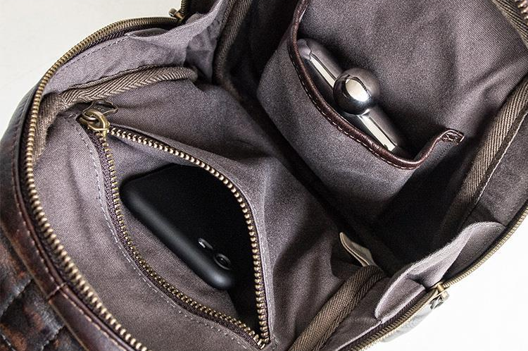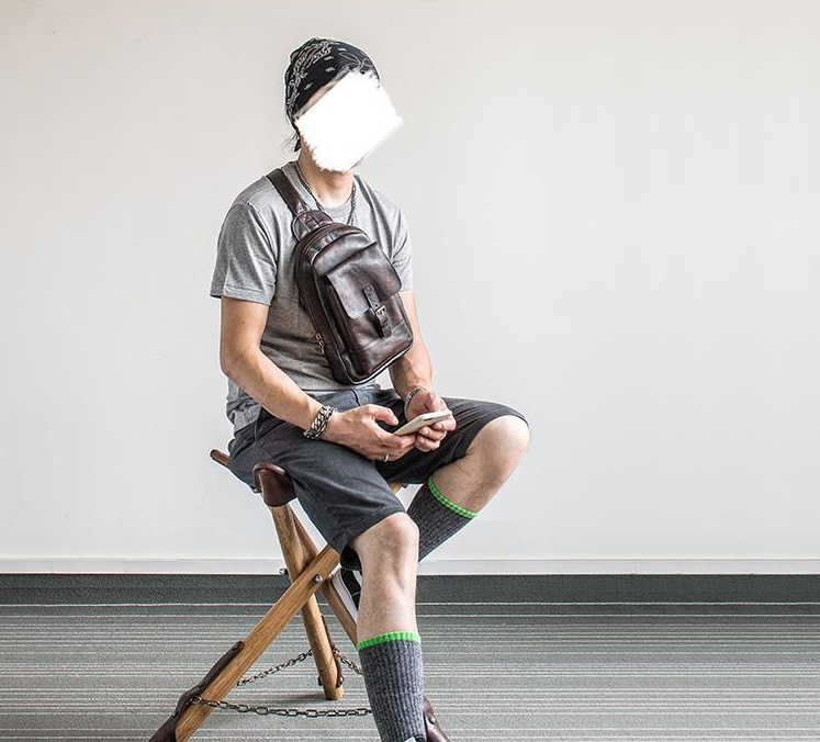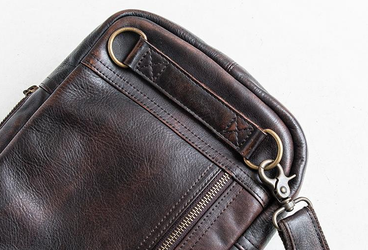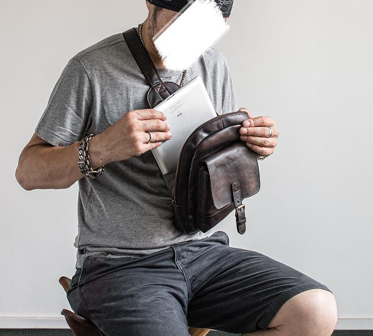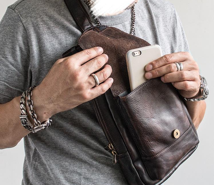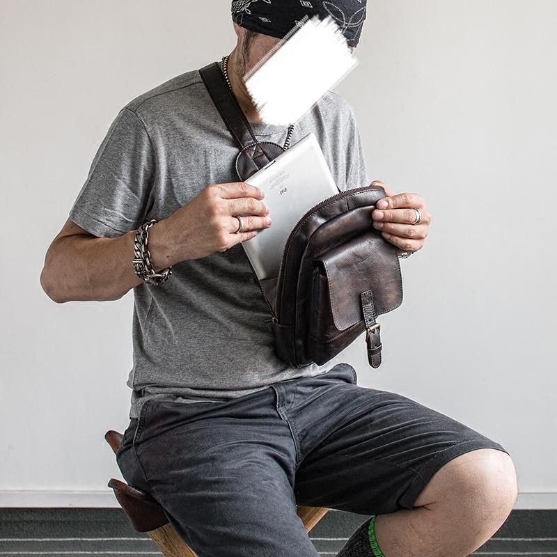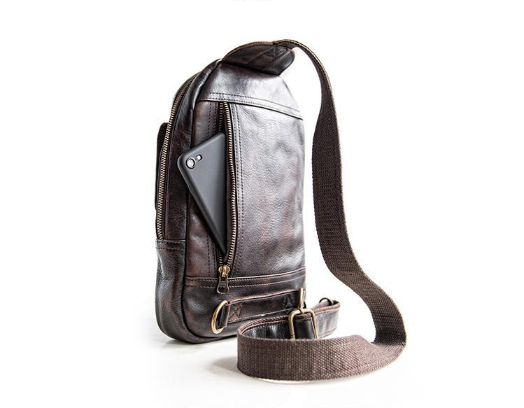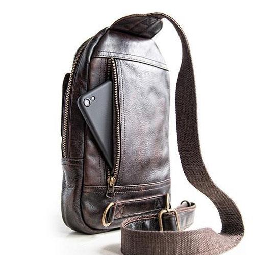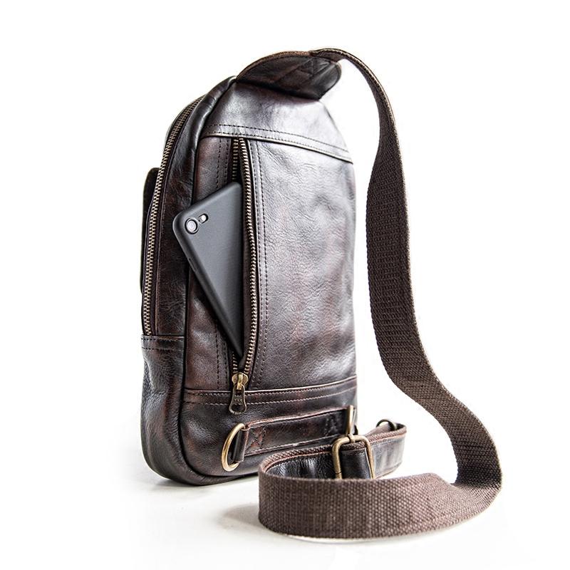 Design: Genuine Leather Mens Cool Chest Bag Sling Bag Crossbody Bag Travel Bag Hiking Bag for men