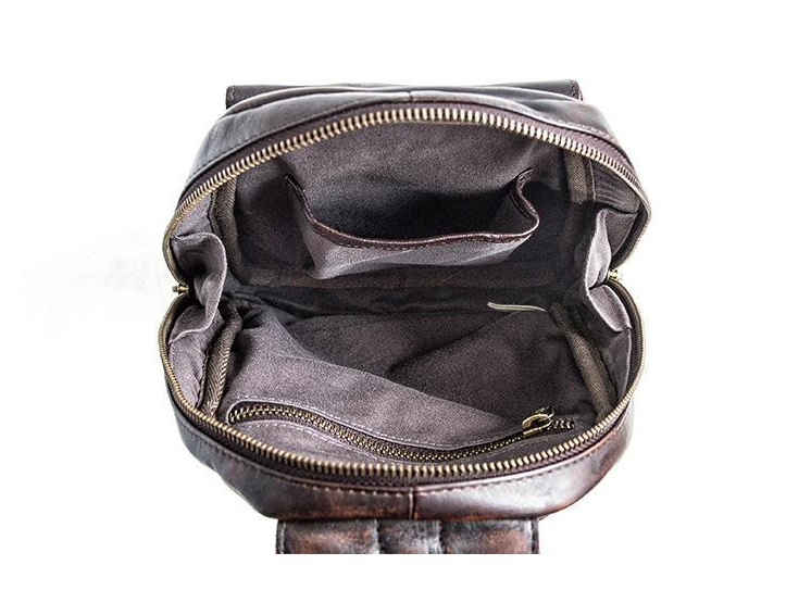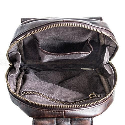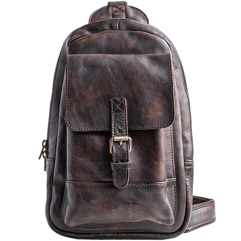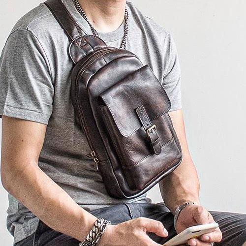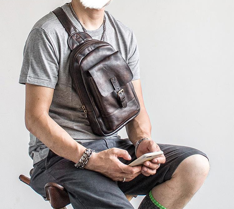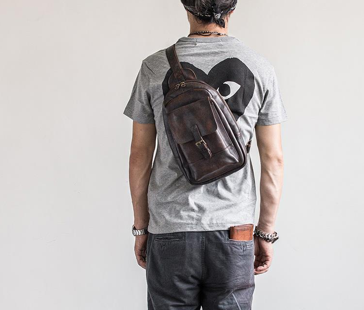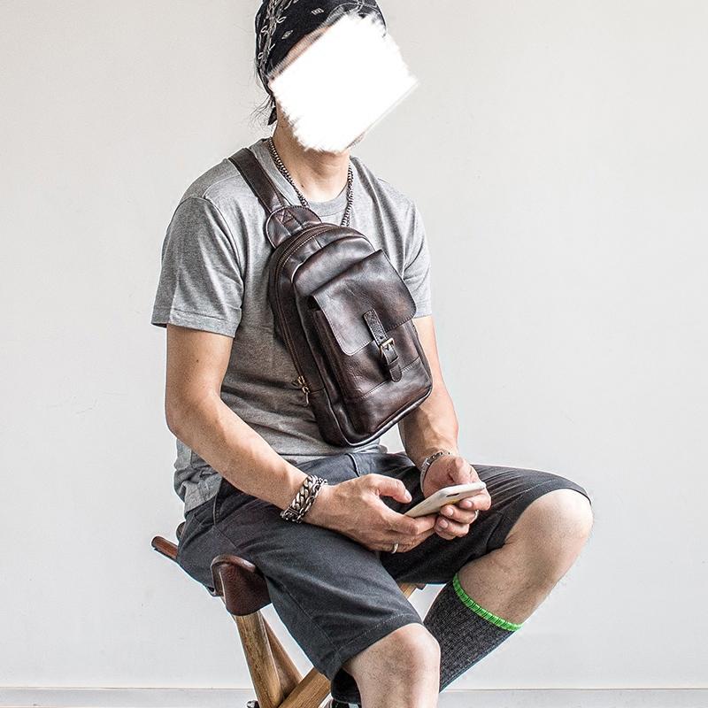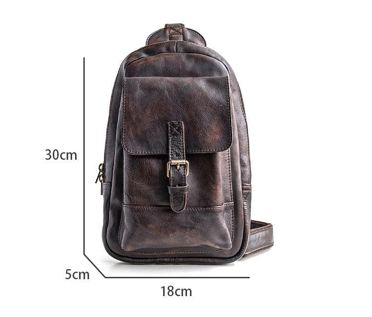 Style: Genuine Leather Mens Cool Chest Bag Sling Bag Crossbody Bag Travel Bag Hiking Bag for men