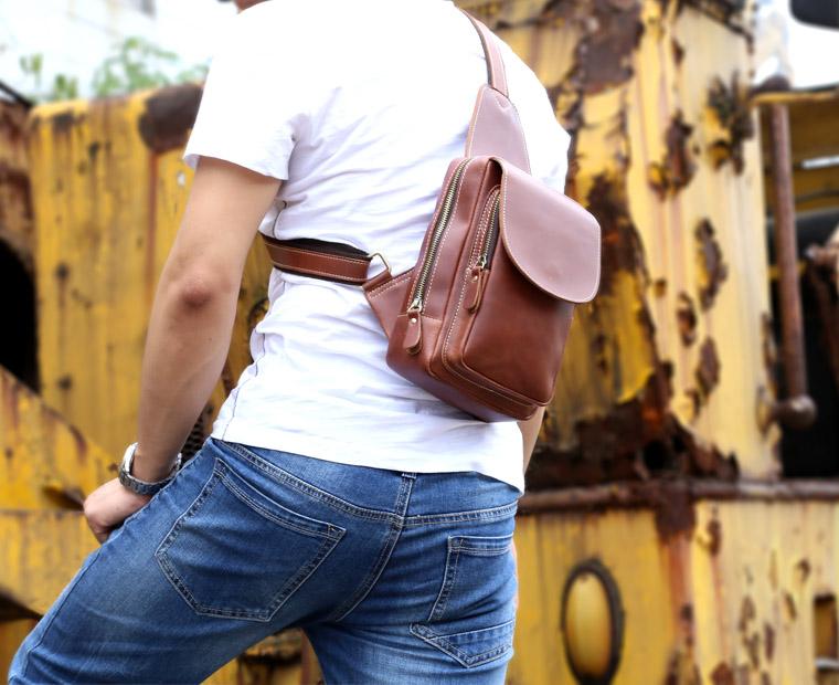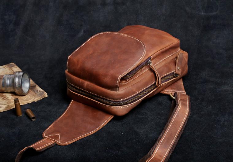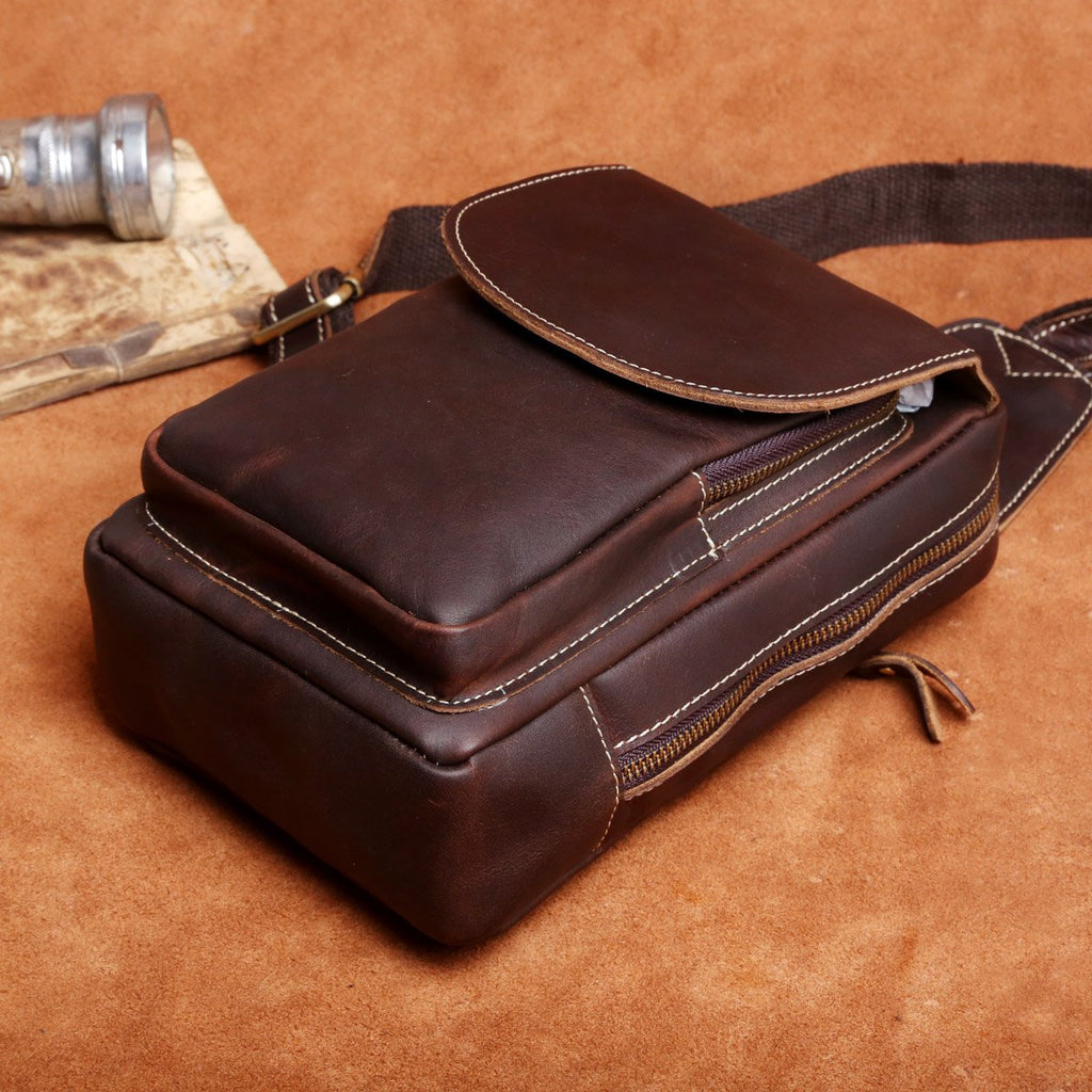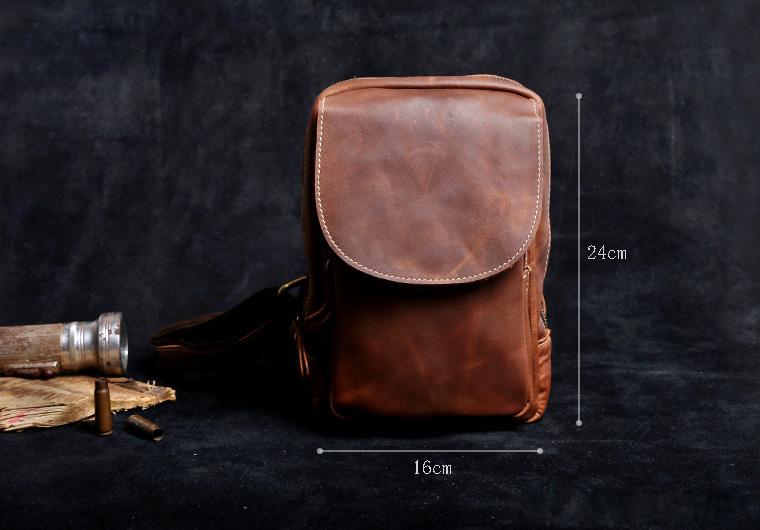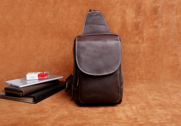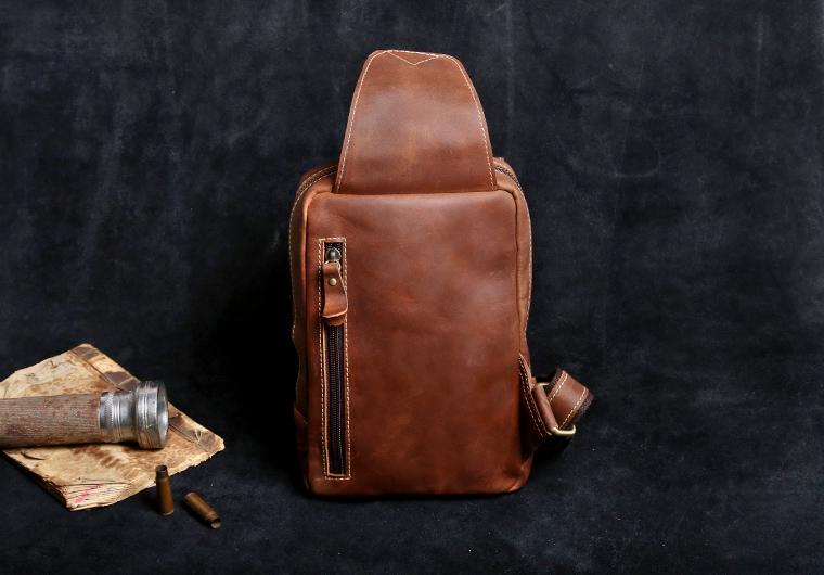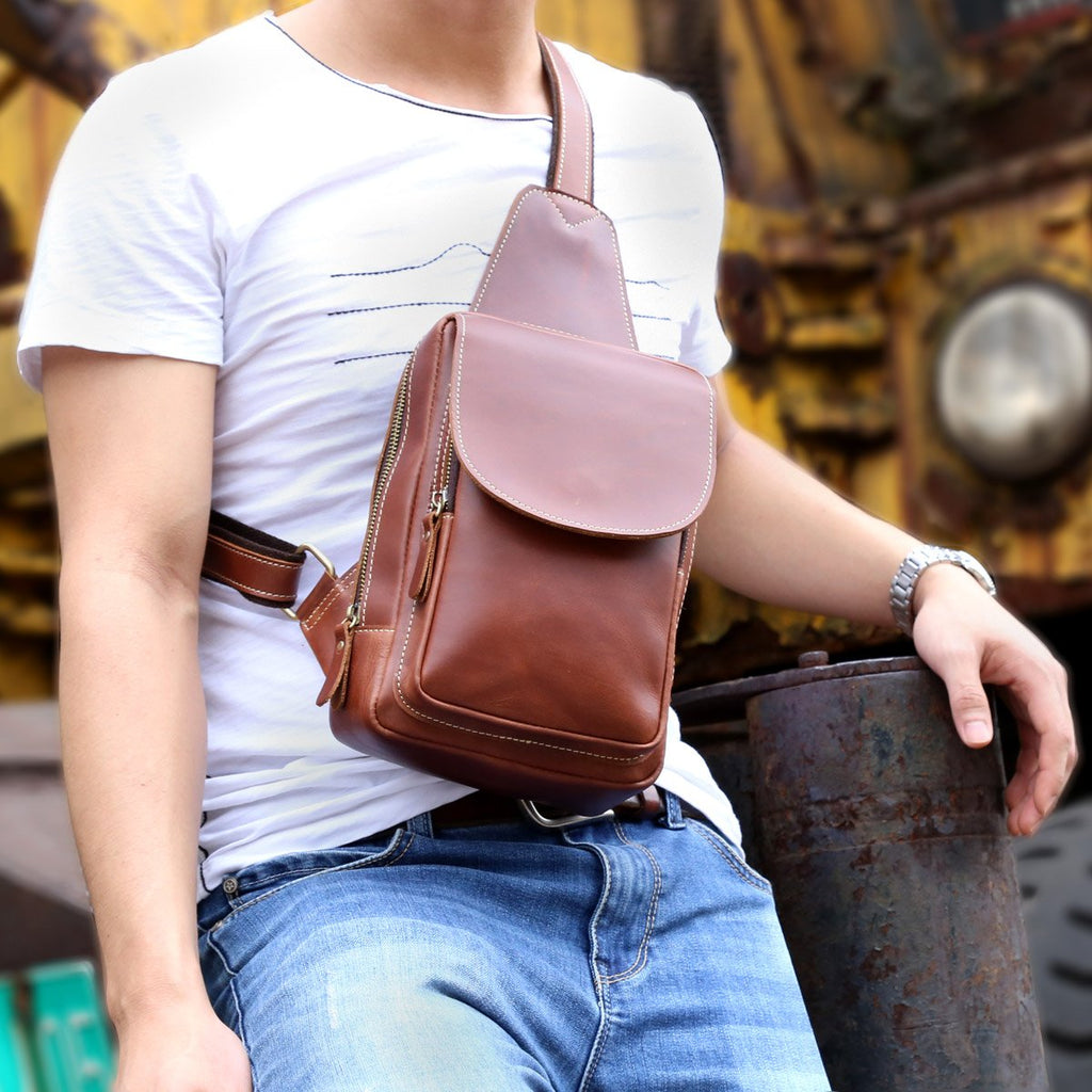Design: Genuine Leather Mens Cool Chest Bag Sling Bag Crossbody Bag Travel Bag Hiking Bag for men