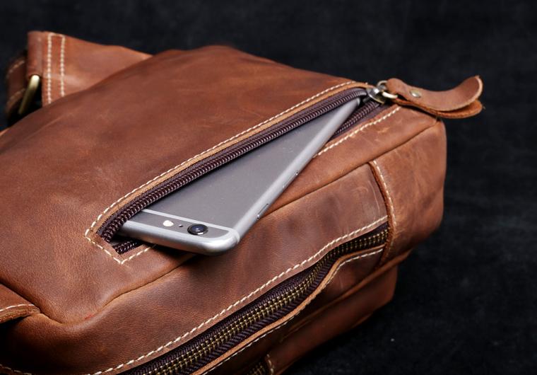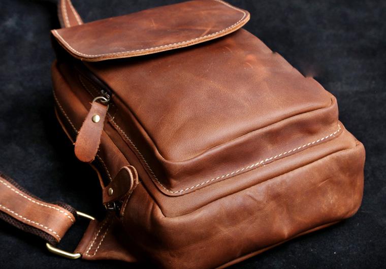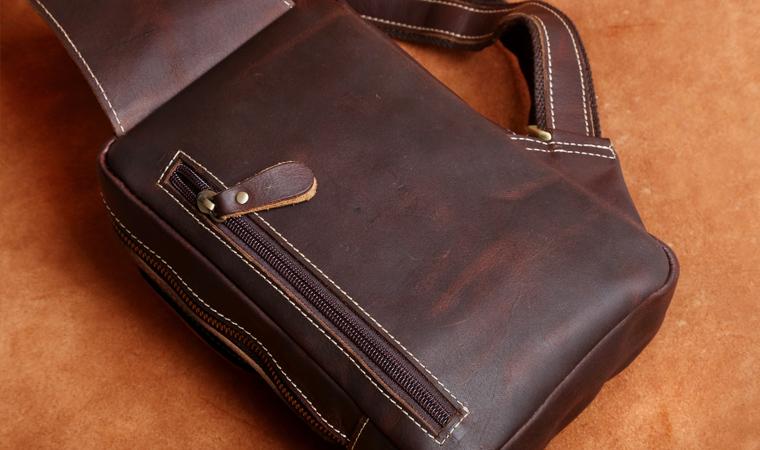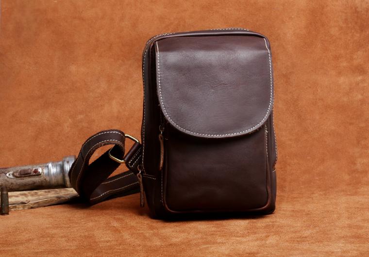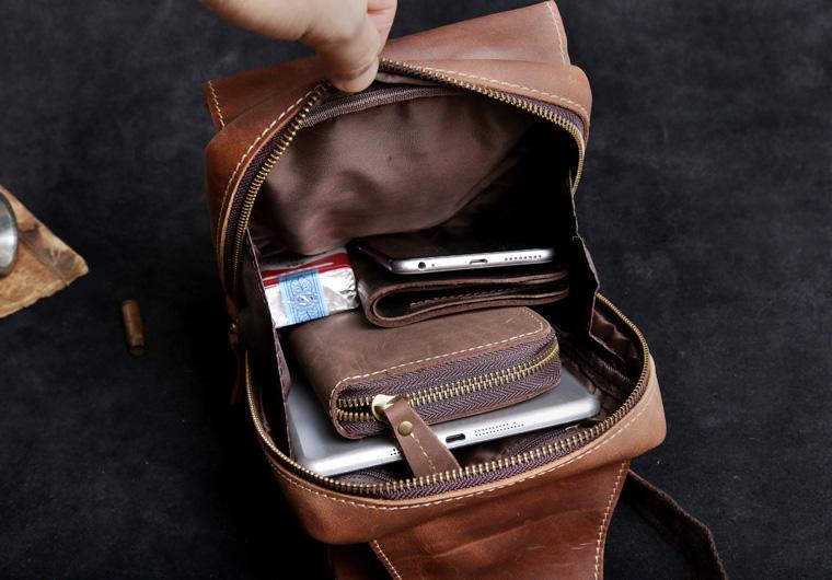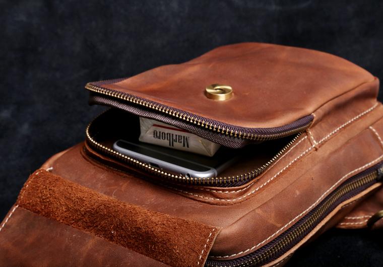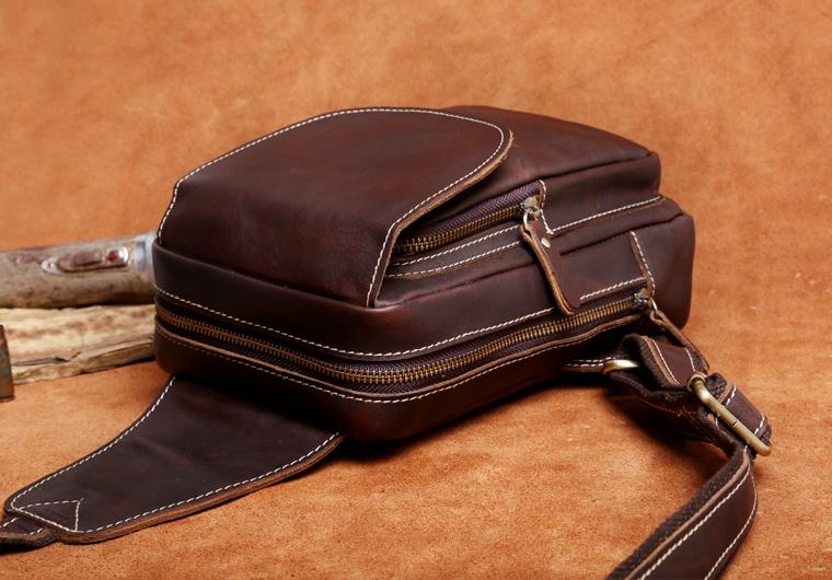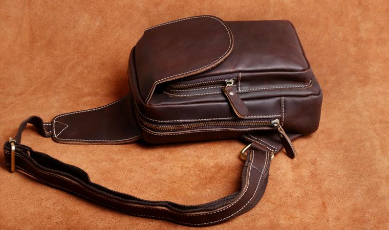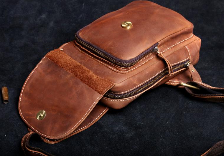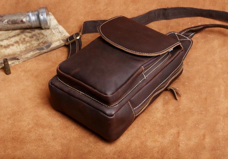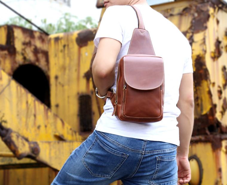 Design: Genuine Leather Mens Cool Chest Bag Sling Bag Crossbody Bag Travel Bag Hiking Bag for men