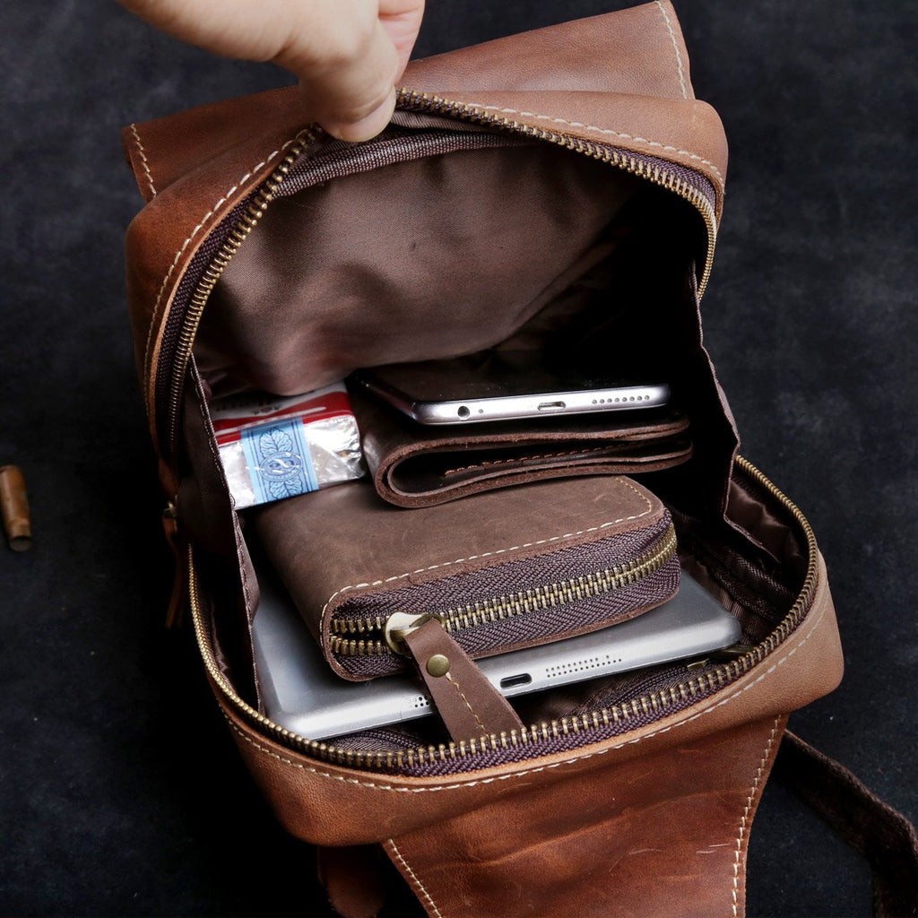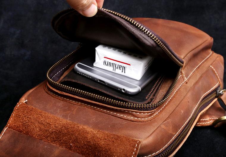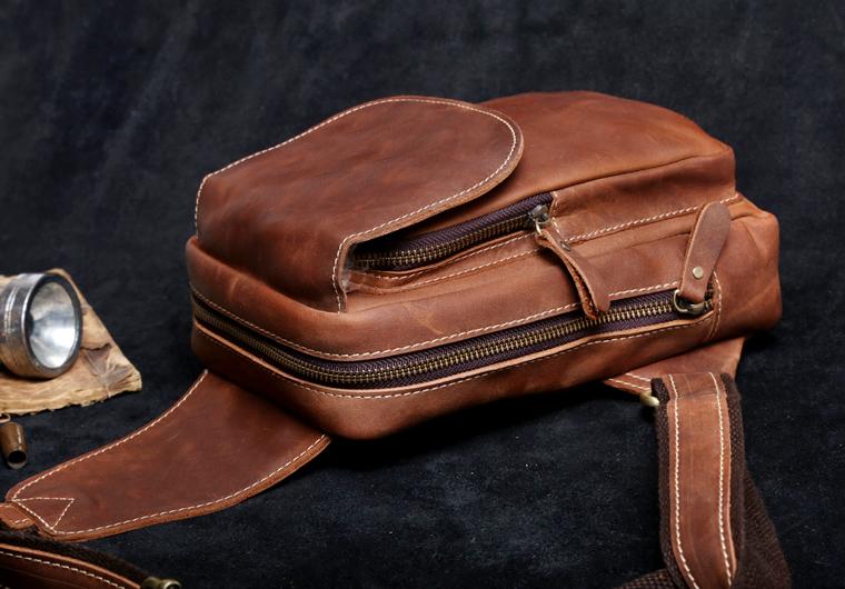 Genuine Leather Mens Cool Chest Bag Sling Bag Crossbody Bag Travel Bag Hiking Bag for men