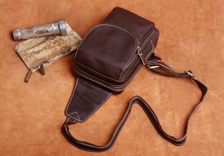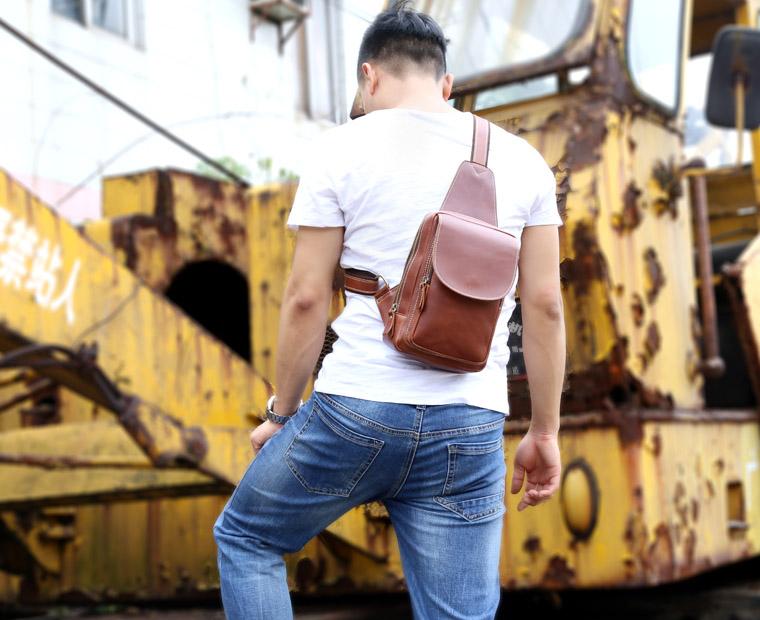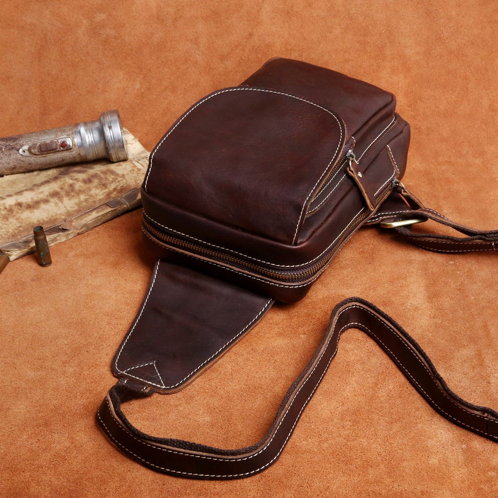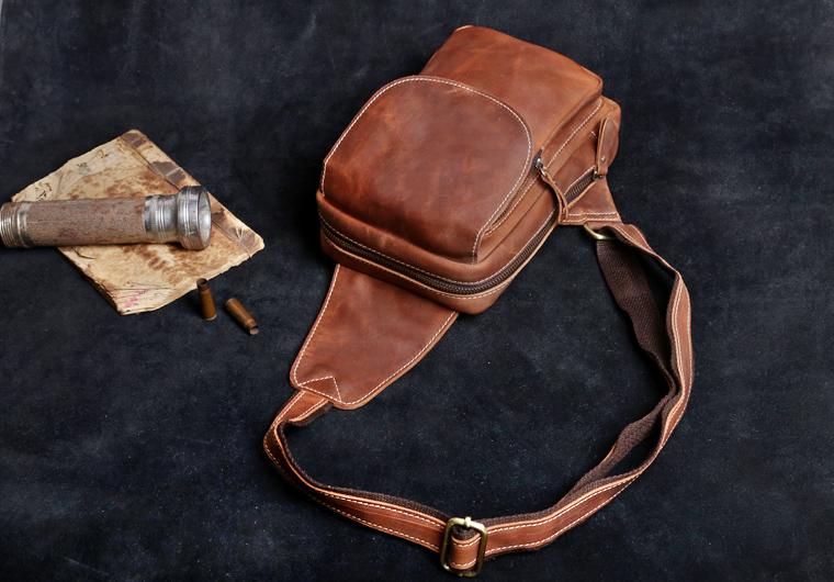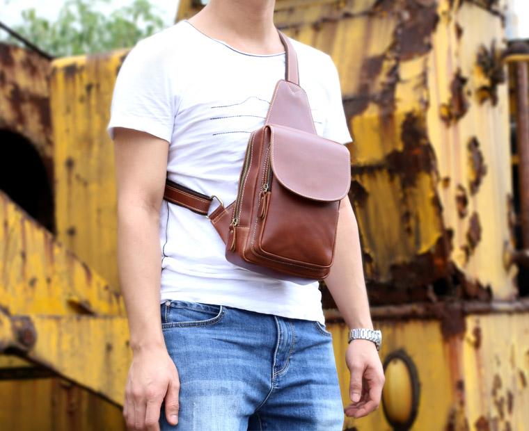 Style: Genuine Leather Mens Cool Chest Bag Sling Bag Crossbody Bag Travel Bag Hiking Bag for men