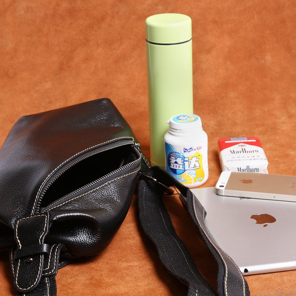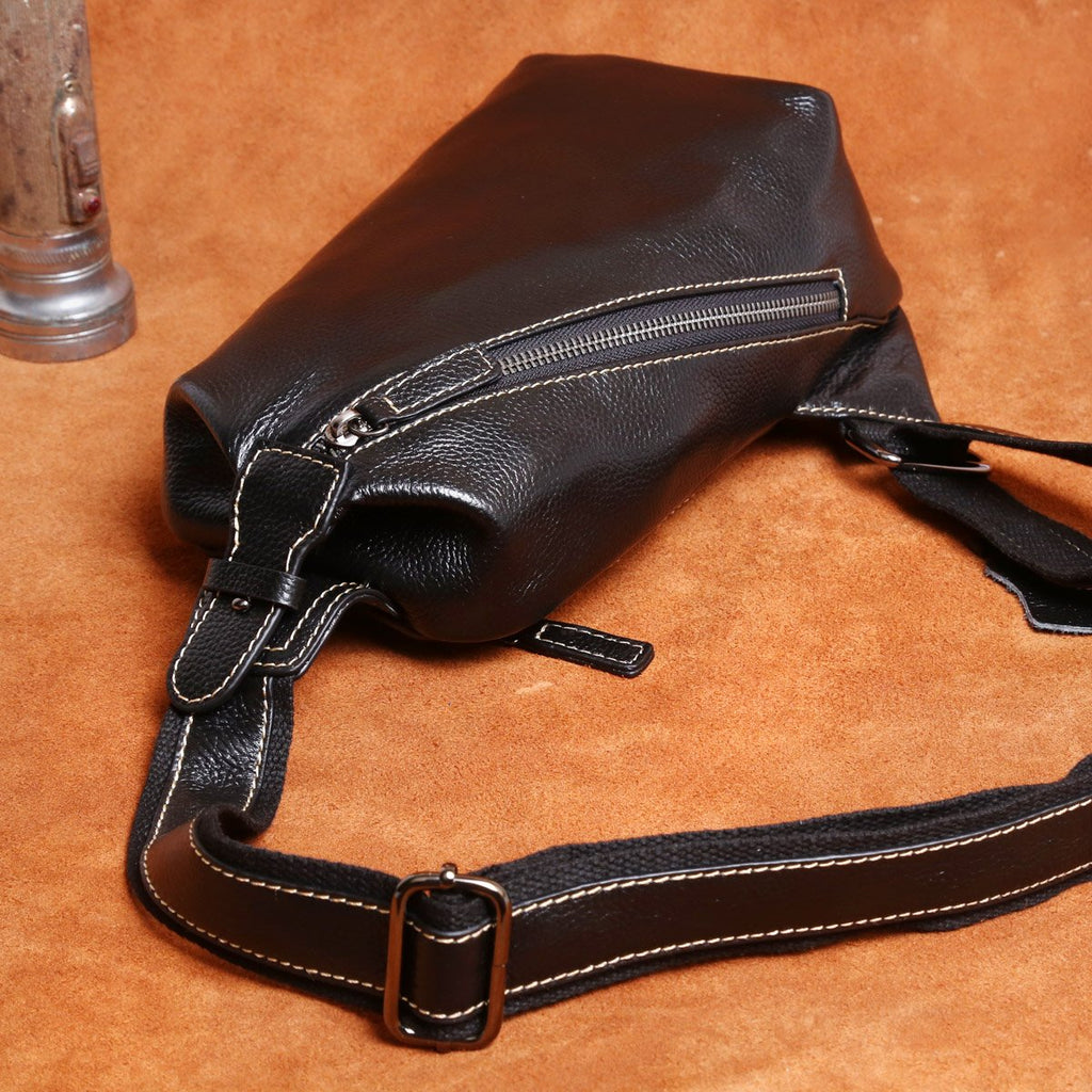Style: Handmade Leather Mens Cool Chest Bag Sling Bag Crossbody Bag Travel Bag Hiking Bag for men
