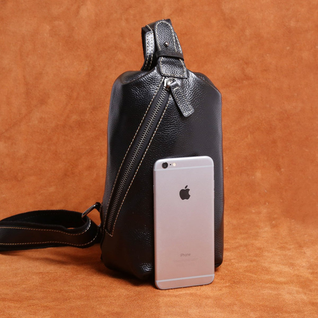 Design: Handmade Leather Mens Cool Chest Bag Sling Bag Crossbody Bag Travel Bag Hiking Bag for men