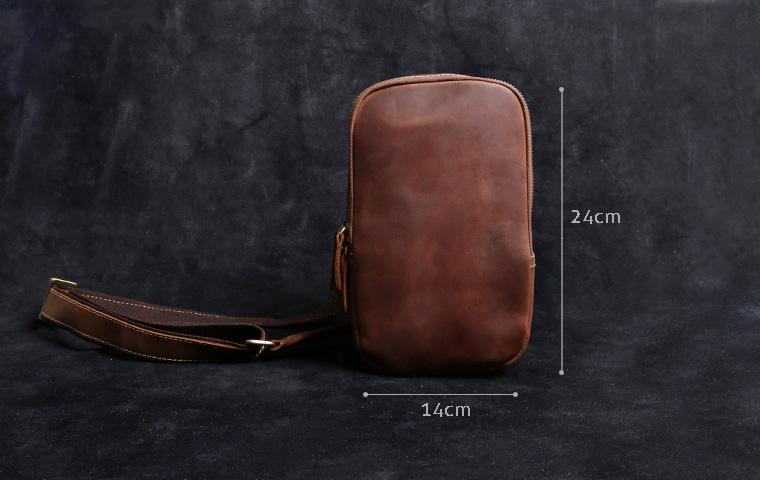 Design: Genuine Leather Mens Cool Chest Bag Sling Bag Crossbody Bag Travel Bag Hiking Bag for men