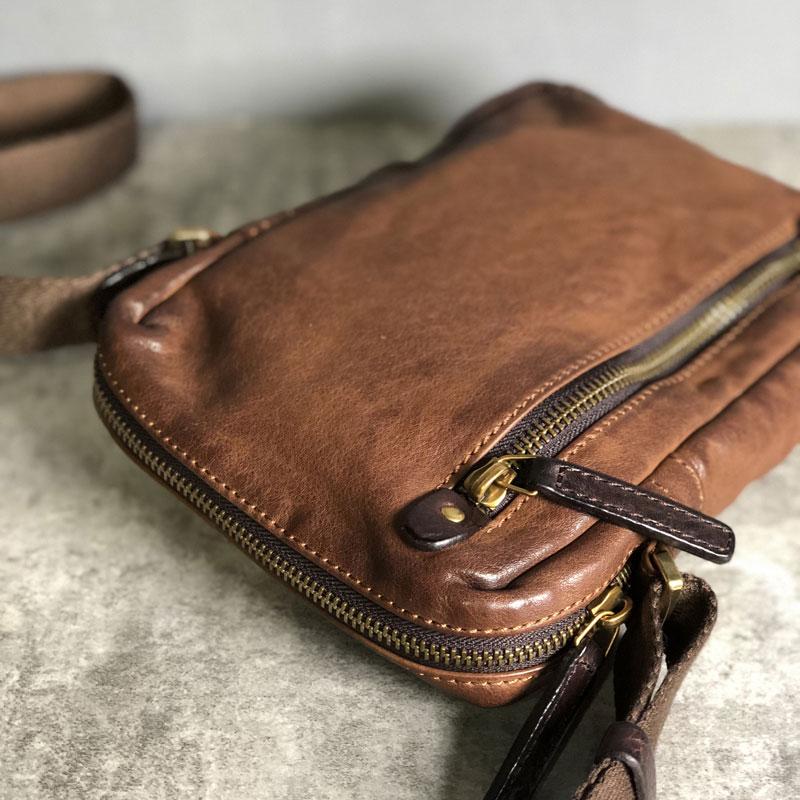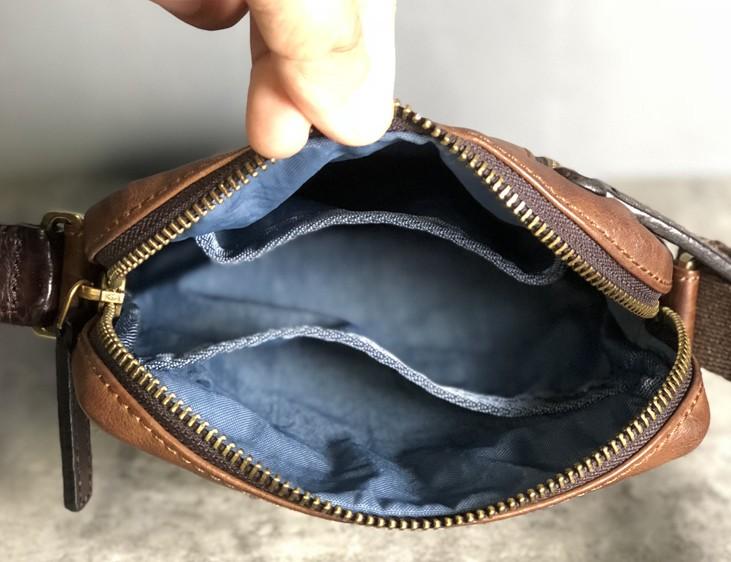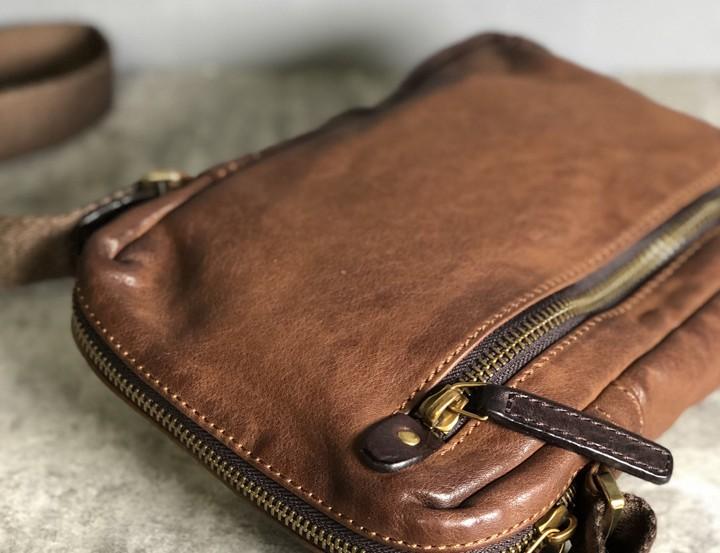 Design: Genuine Leather Mens Cool Chest Bag Sling Bag Crossbody Bag Travel Bag Hiking Bag for men