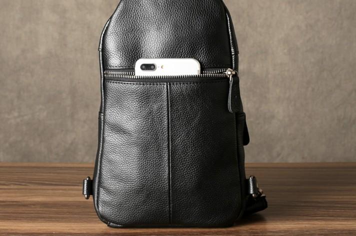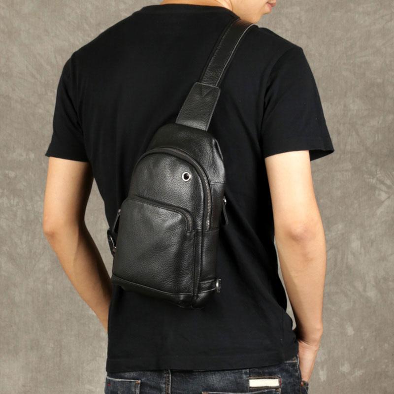 Design: Genuine Leather Mens Cool Chest Bag Sling Bag Crossbody Bag Travel Bag Hiking Bag for men