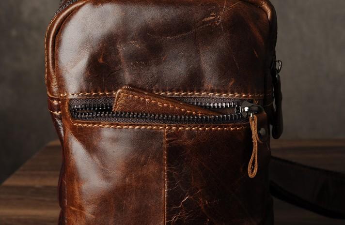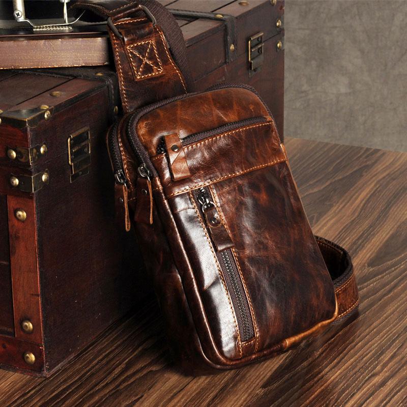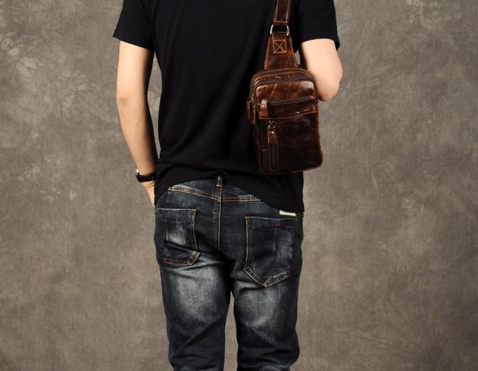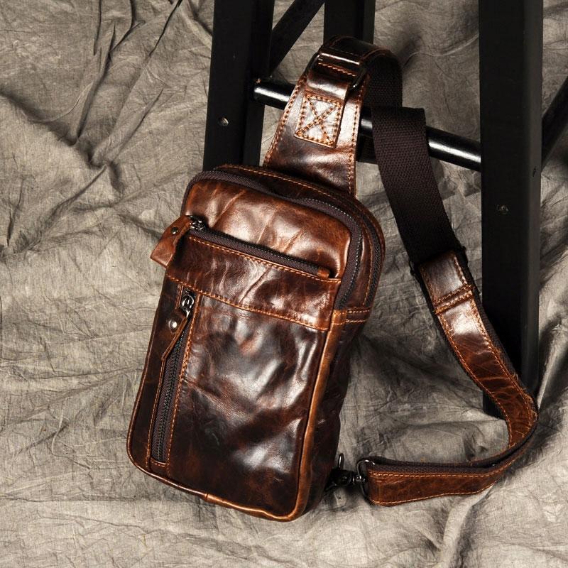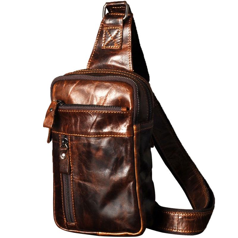 Design: Genuine Leather Mens Cool Chest Bag Sling Bag Crossbody Bag Travel Bag Hiking Bag for men