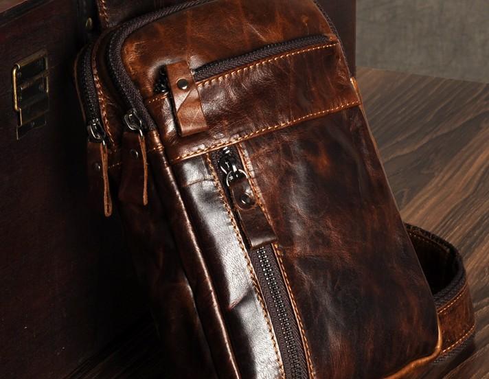 Genuine Leather Mens Cool Chest Bag Sling Bag Crossbody Bag Travel Bag Hiking Bag for men