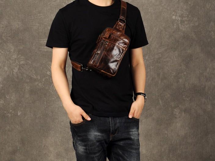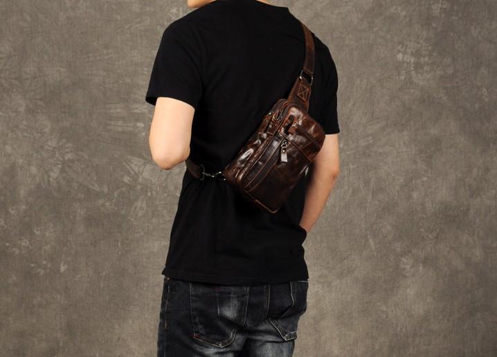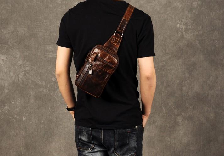 Style: Genuine Leather Mens Cool Chest Bag Sling Bag Crossbody Bag Travel Bag Hiking Bag for men