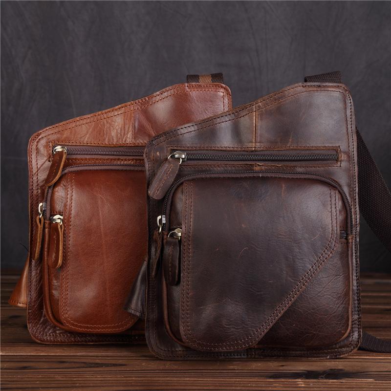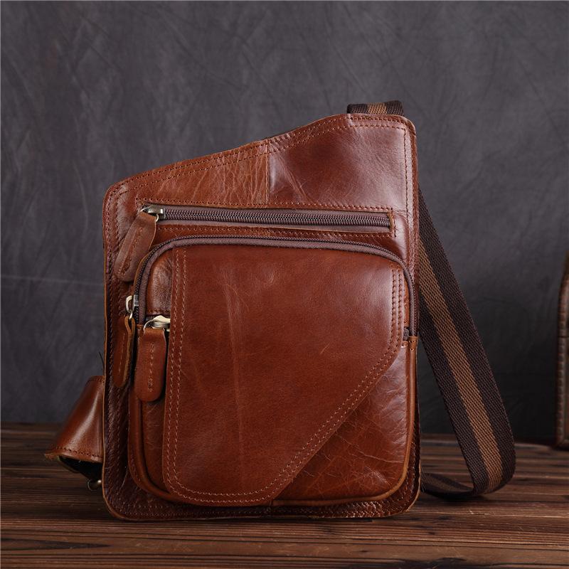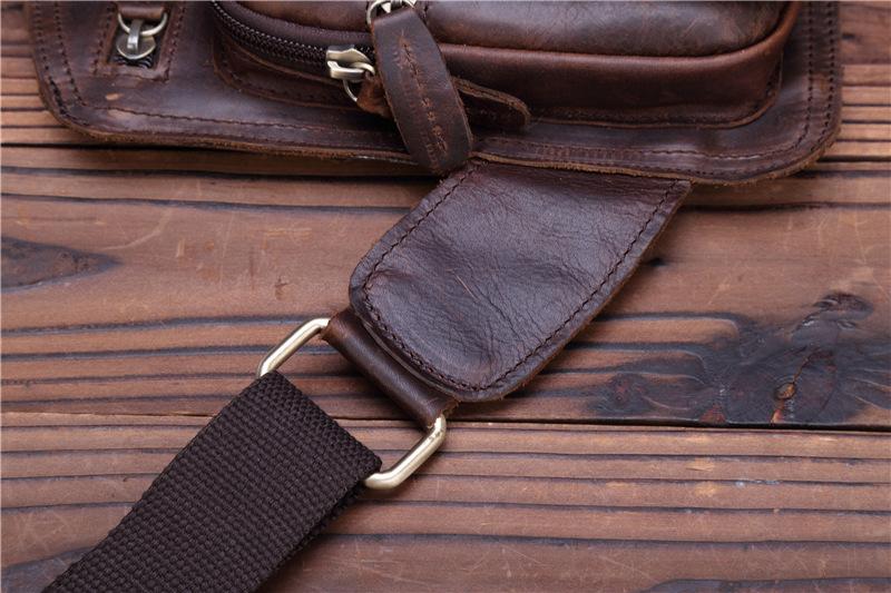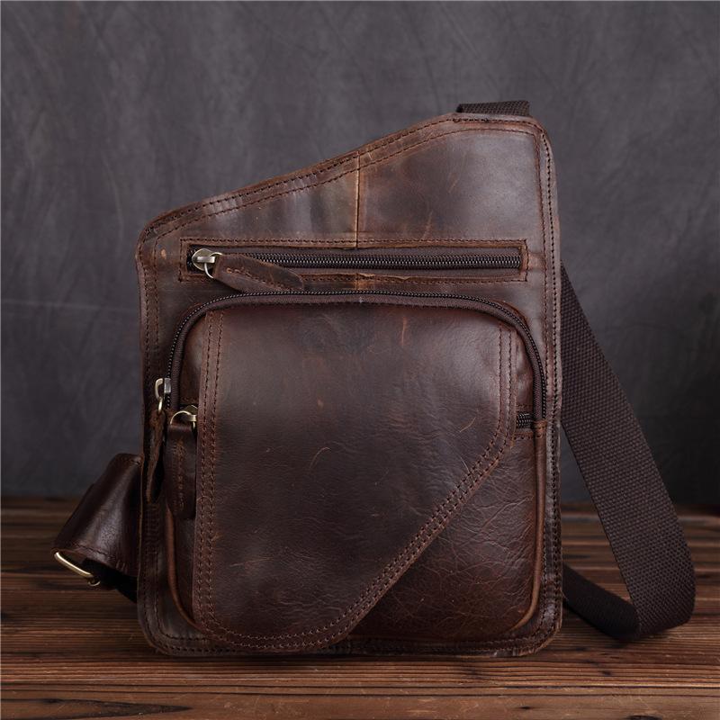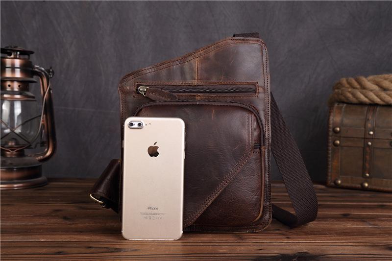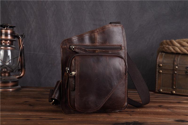 Design: Genuine Leather Mens Cool Chest Bag Sling Bag Crossbody Bag Travel Bag Hiking Bag for men