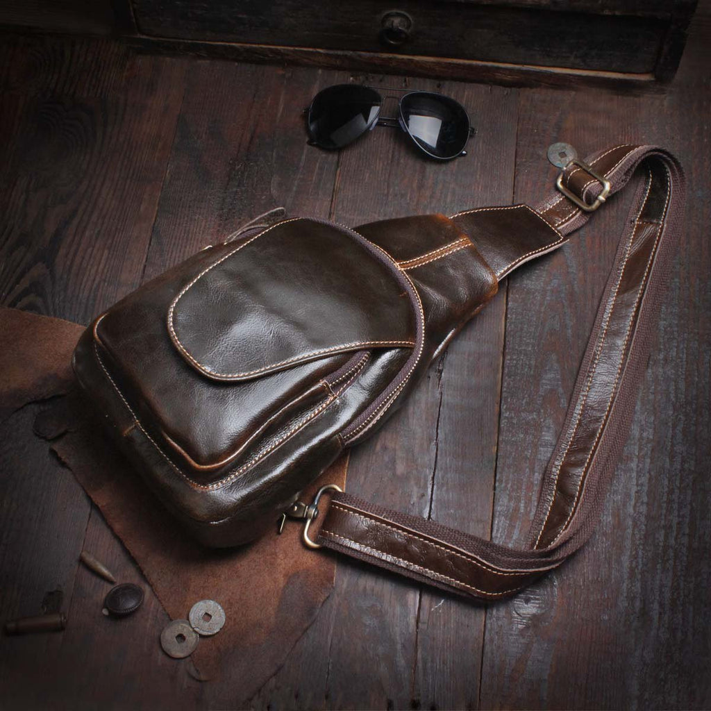 Style: Genuine Leather Mens Cool Chest Bag Sling Bag Crossbody Bag Travel Bag Hiking Bag for men