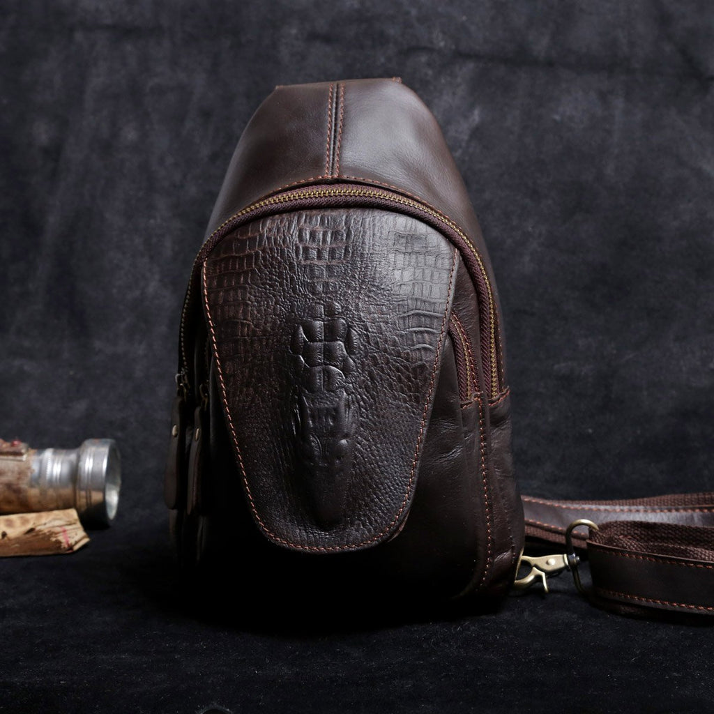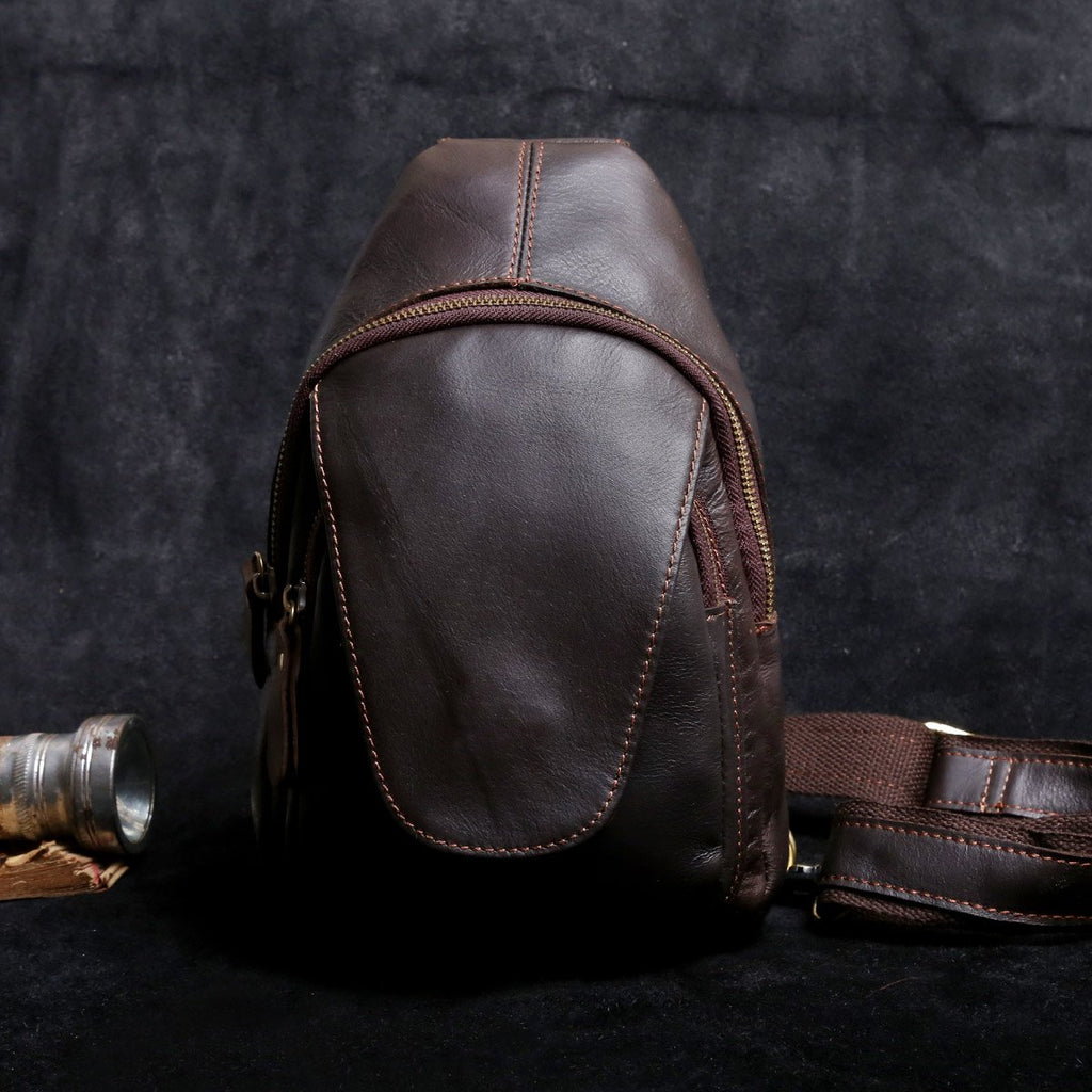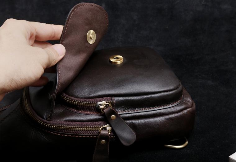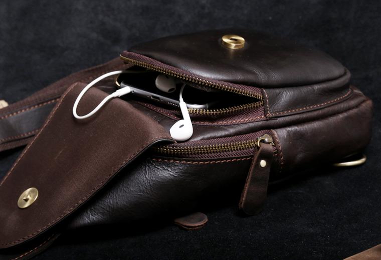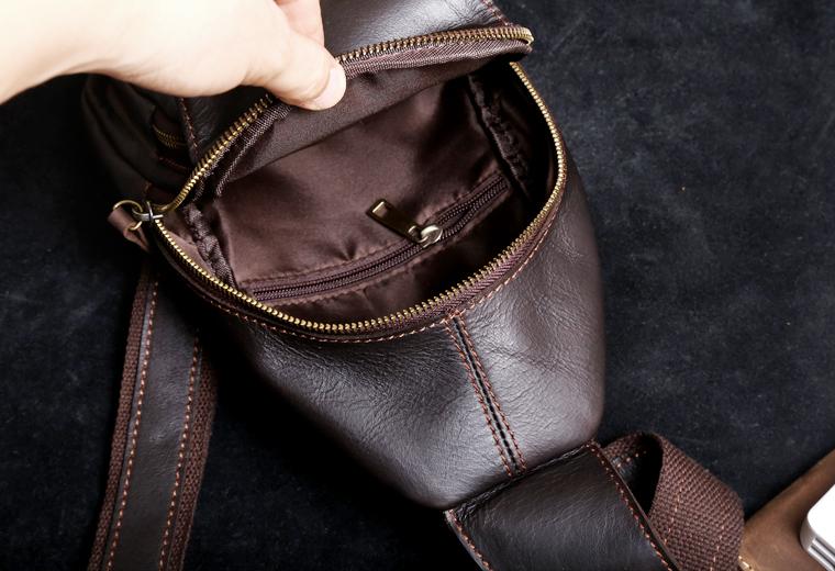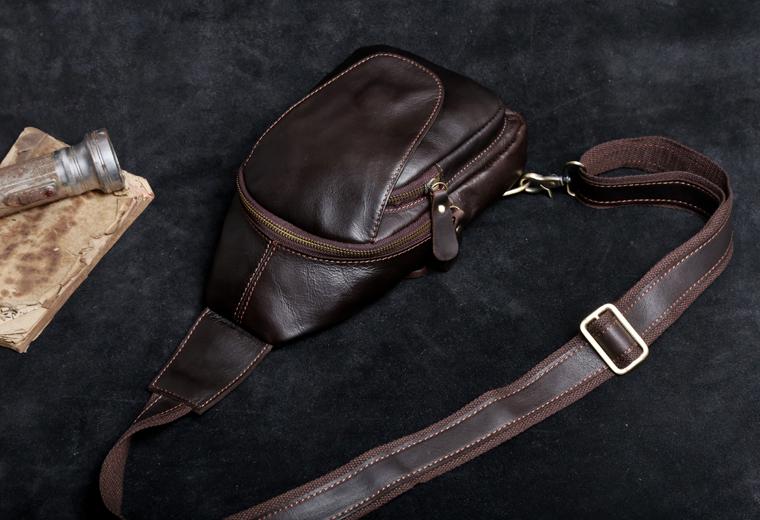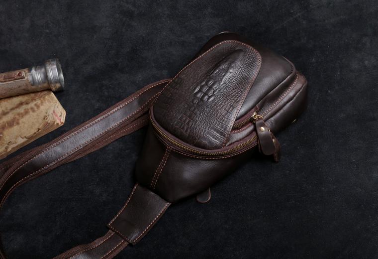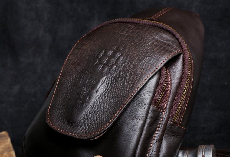 Design: Genuine Leather Mens Cool Chest Bag Sling Bag Crossbody Bag Travel Bag Hiking Bag for men