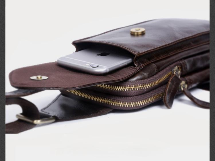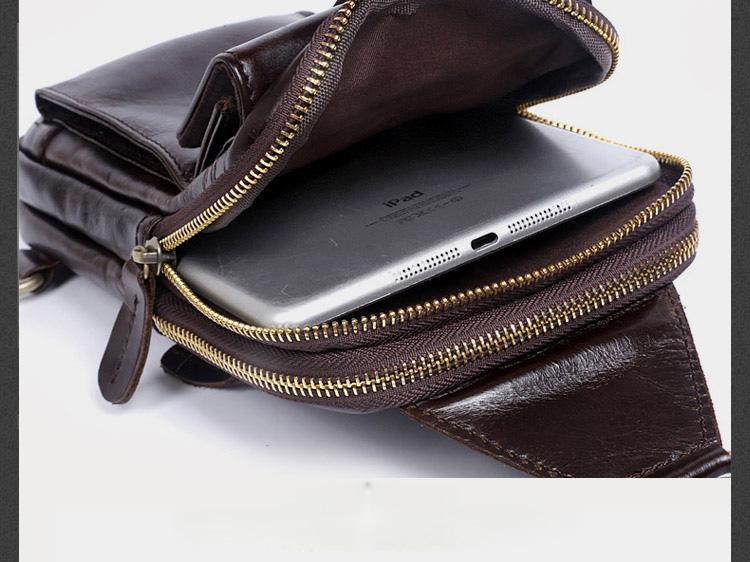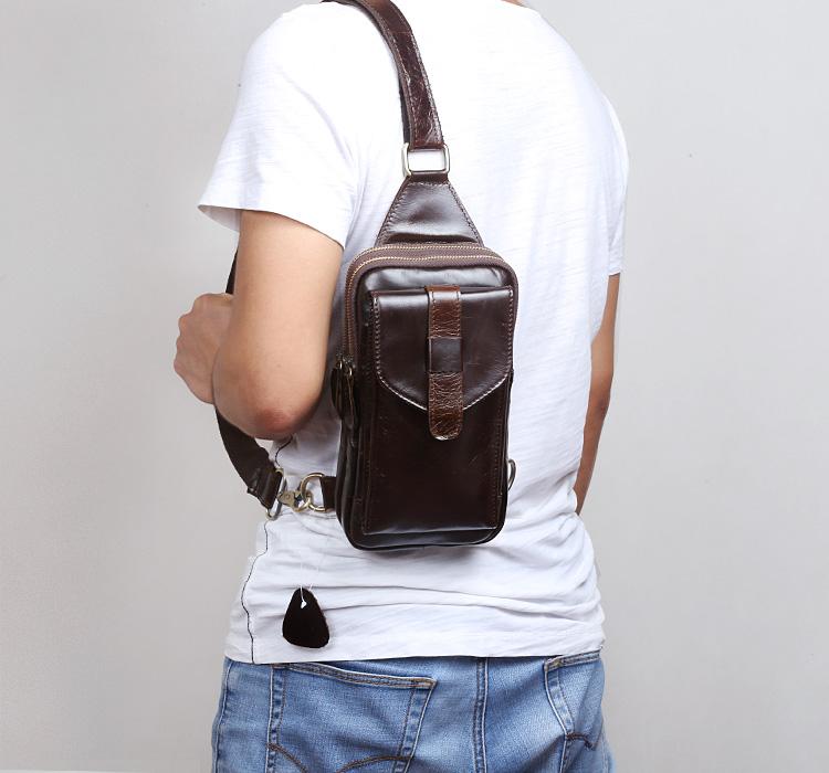 Design: Genuine Leather Mens Cool Chest Bag Sling Bag Crossbody Bag Travel Bag Hiking Bag for men