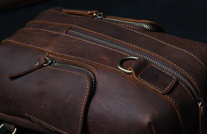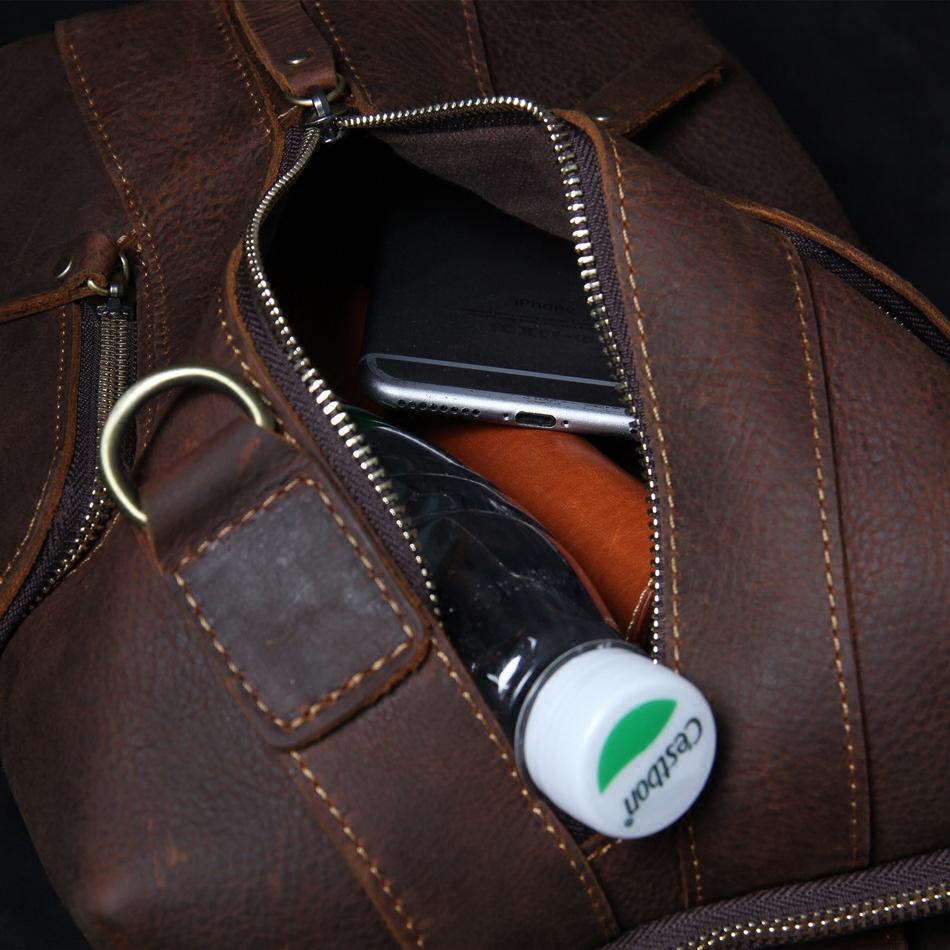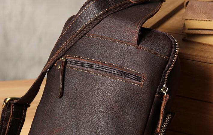 Design: Handmade Genuine Leather Coffee Mens Cool Sling Pack Bag Crossbody Bag Chest Bag for men