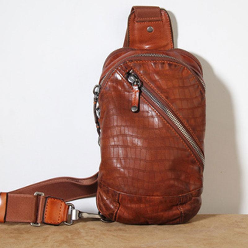 Style: Handmade Genuine Leather Mens Cool Chest Bag Sling Bag Crossbody Bag Travel Bag Hiking Bag for men