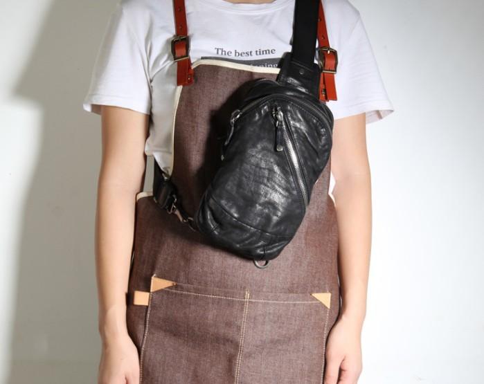 Handmade Genuine Leather Mens Cool Chest Bag Sling Bag Crossbody Bag Travel Bag Hiking Bag for men