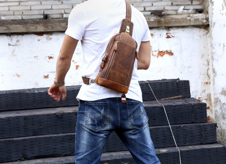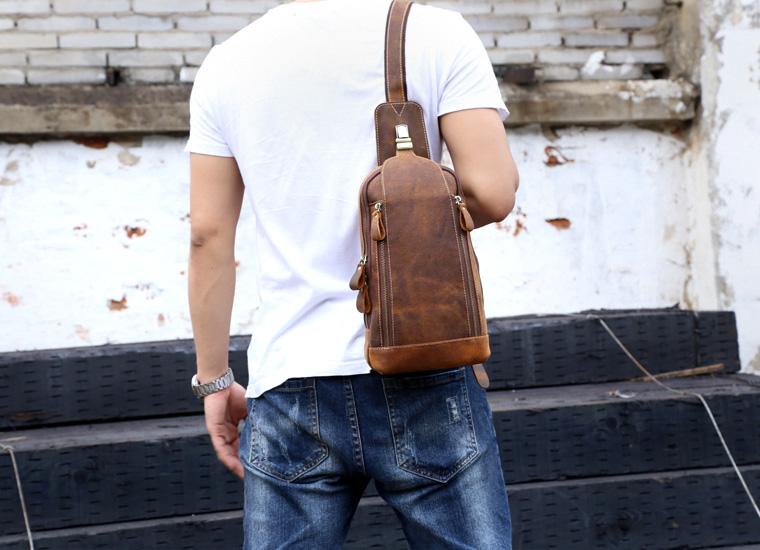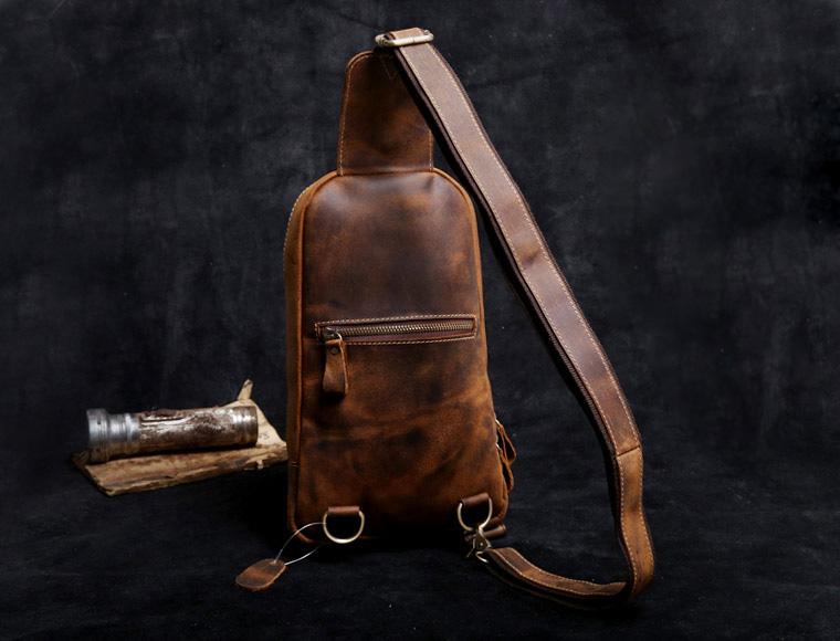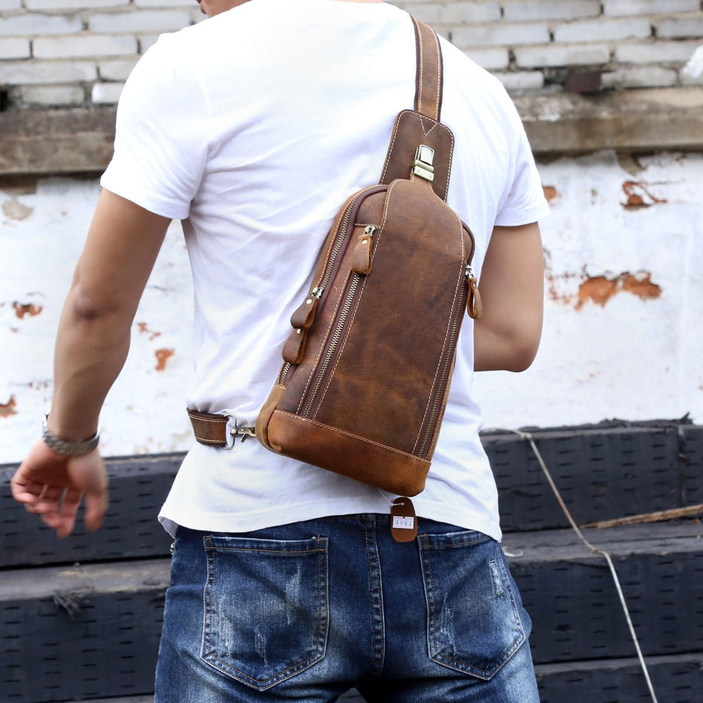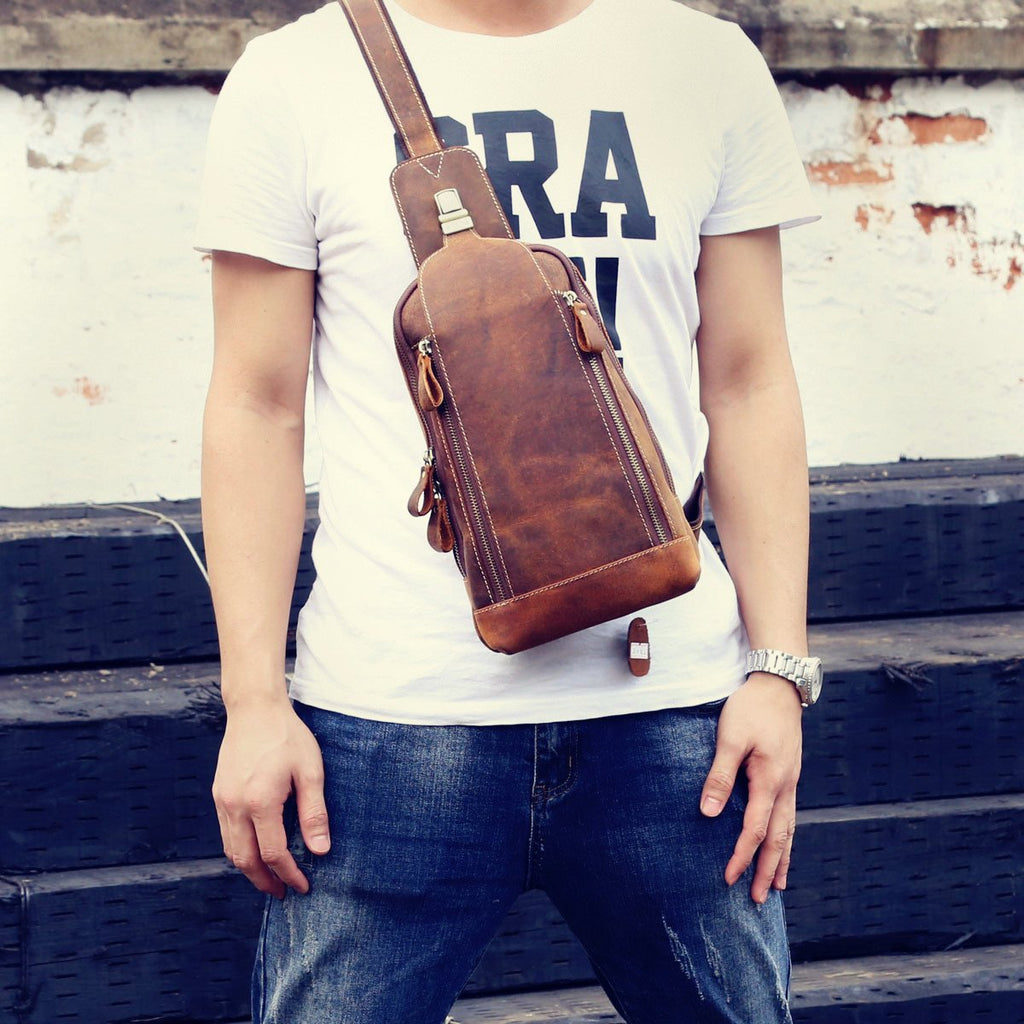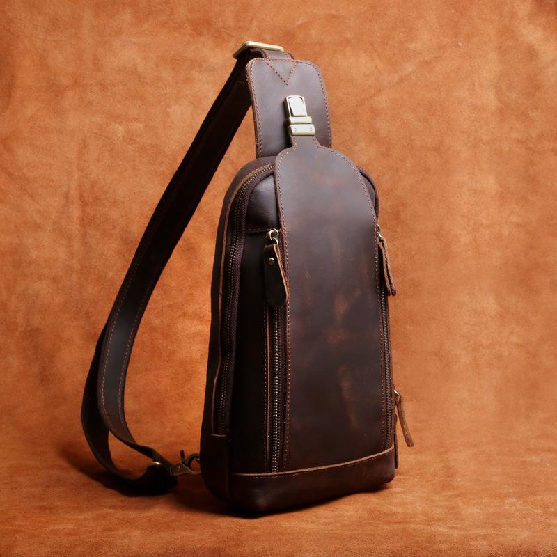 Style: Handmade Leather Mens Cool Chest Bag Sling Bag Crossbody Bag Travel Bag Hiking Bag for men